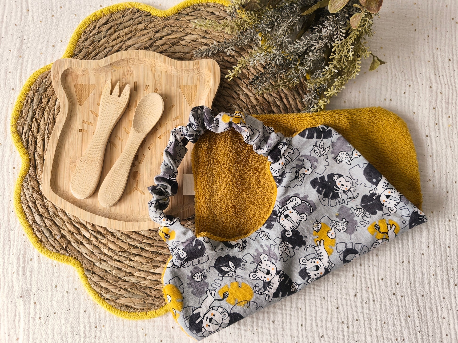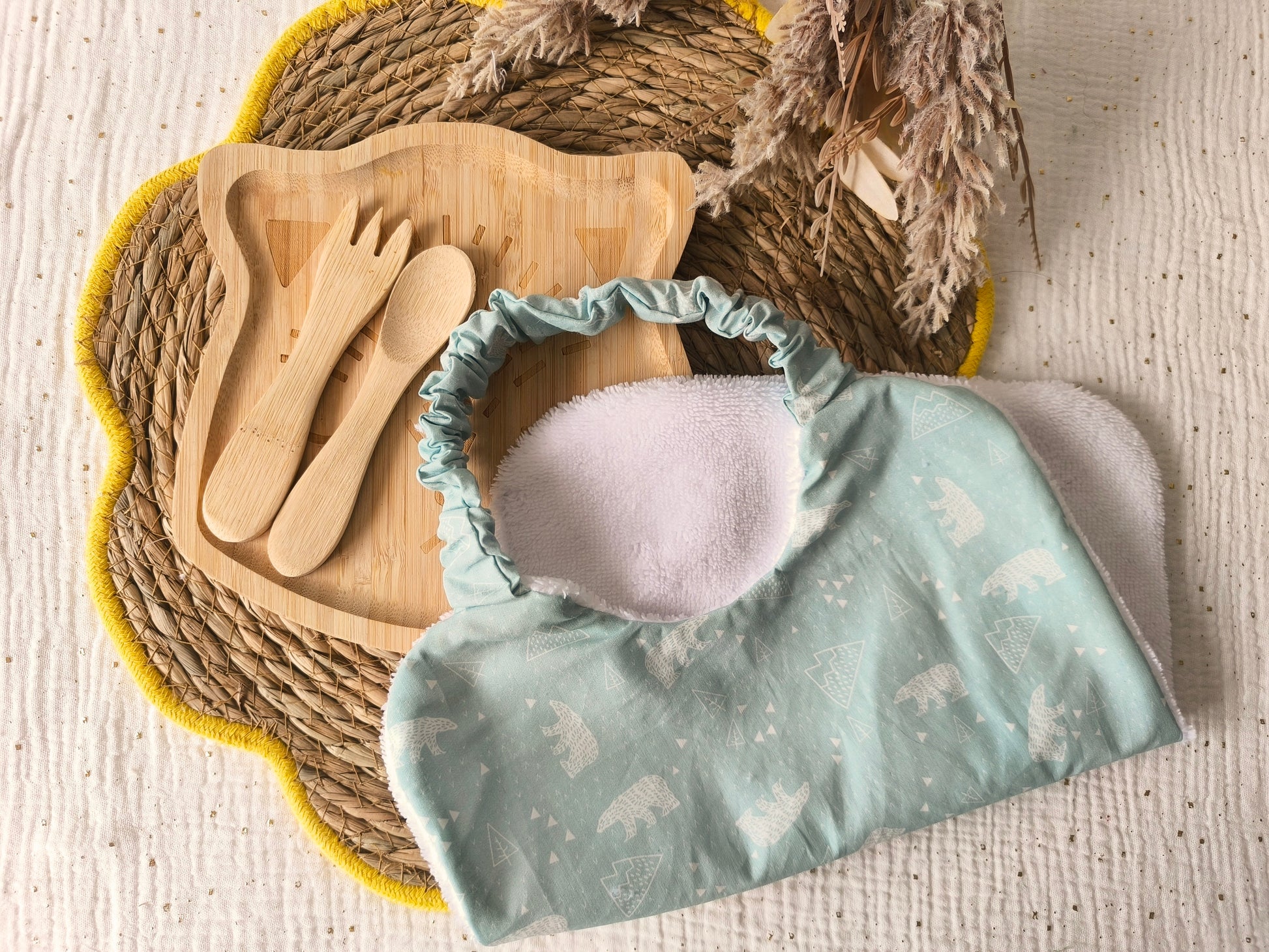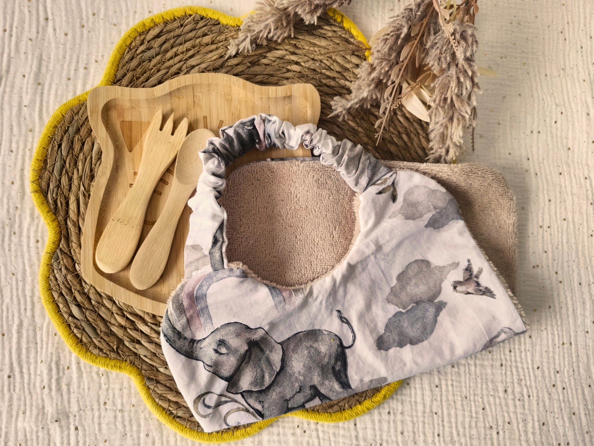 Avec son tour de cou élastiqué, votre enfant pourra l’enfiler (et l’enlever!) tout seul comme un grand, pour qu’il soit autonome lors des repas. 🎉