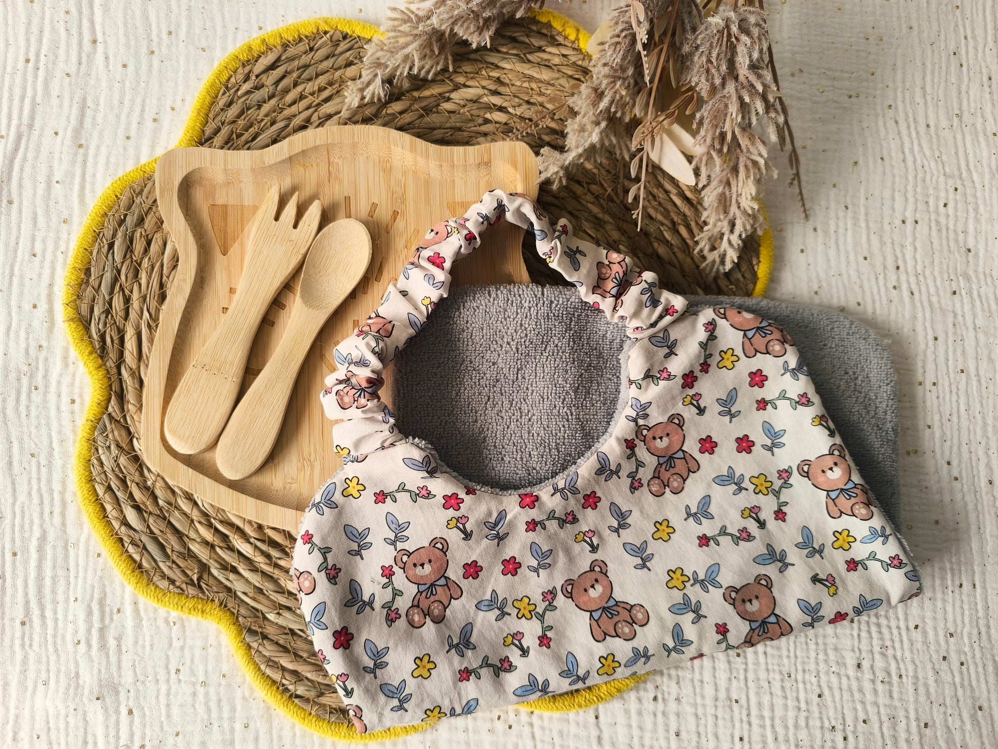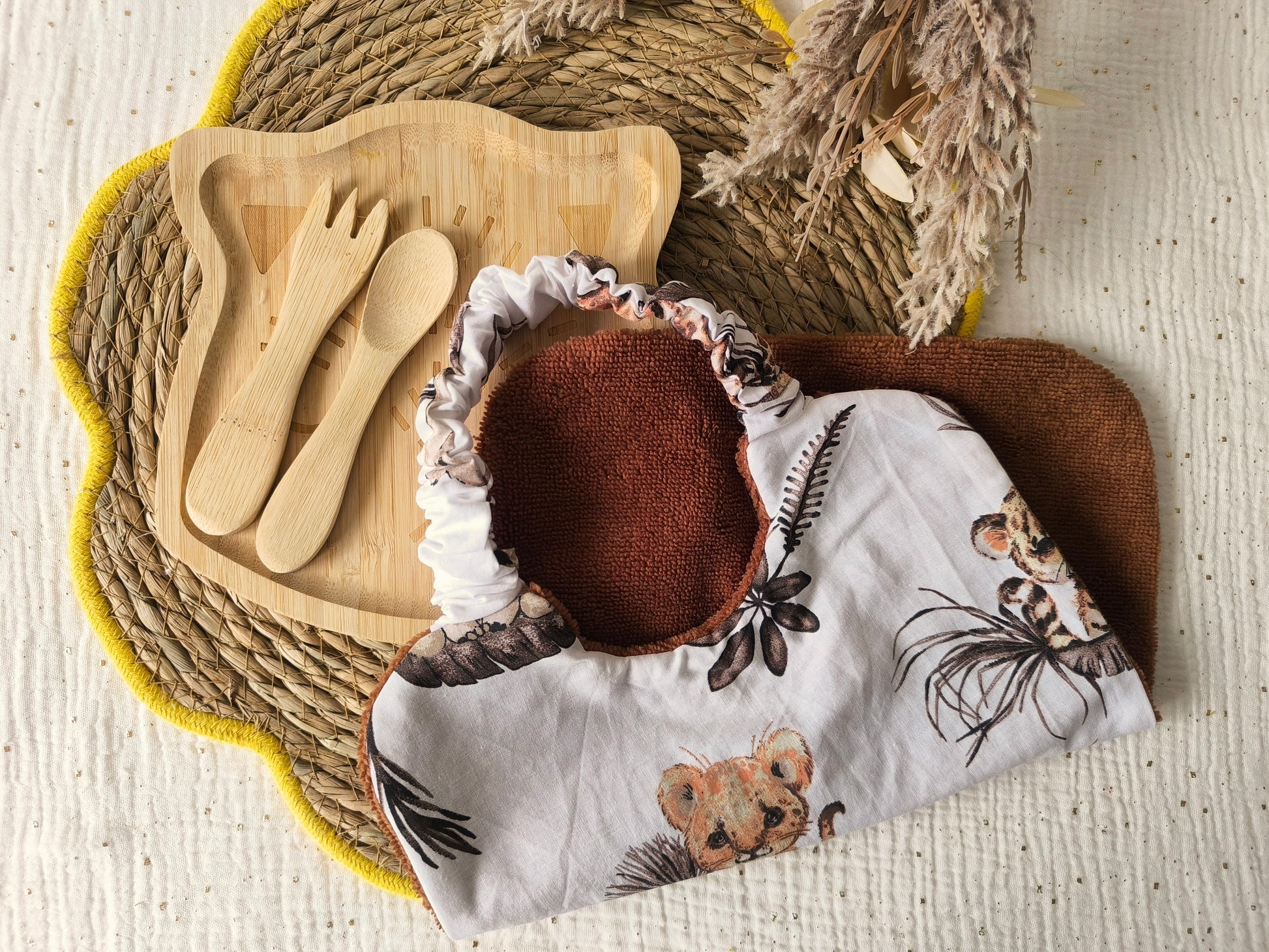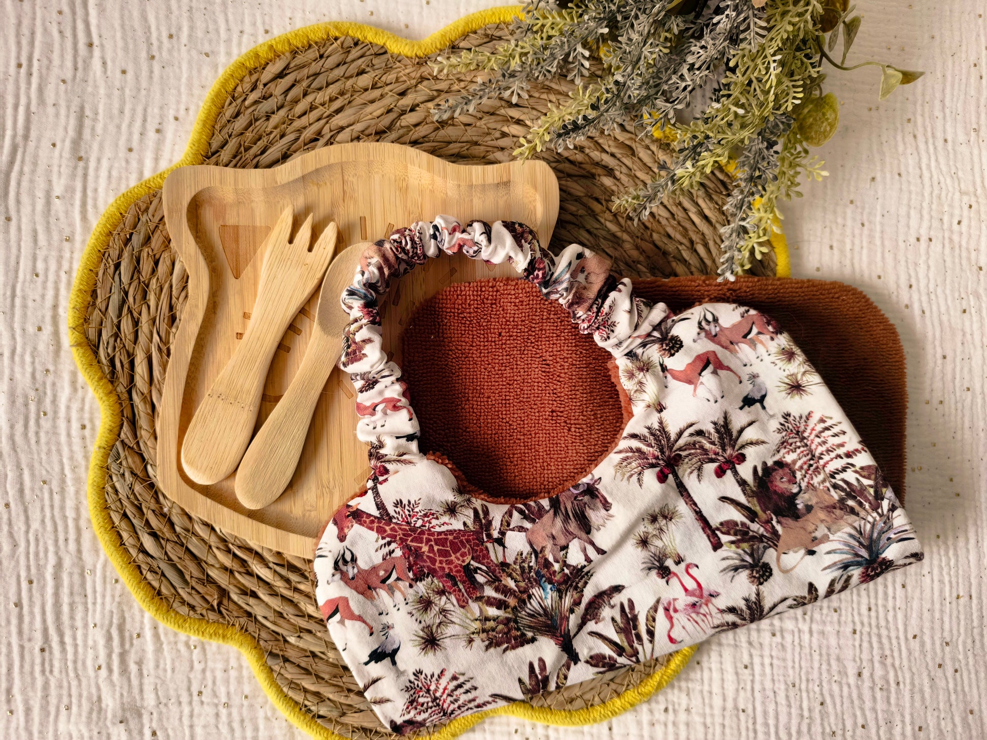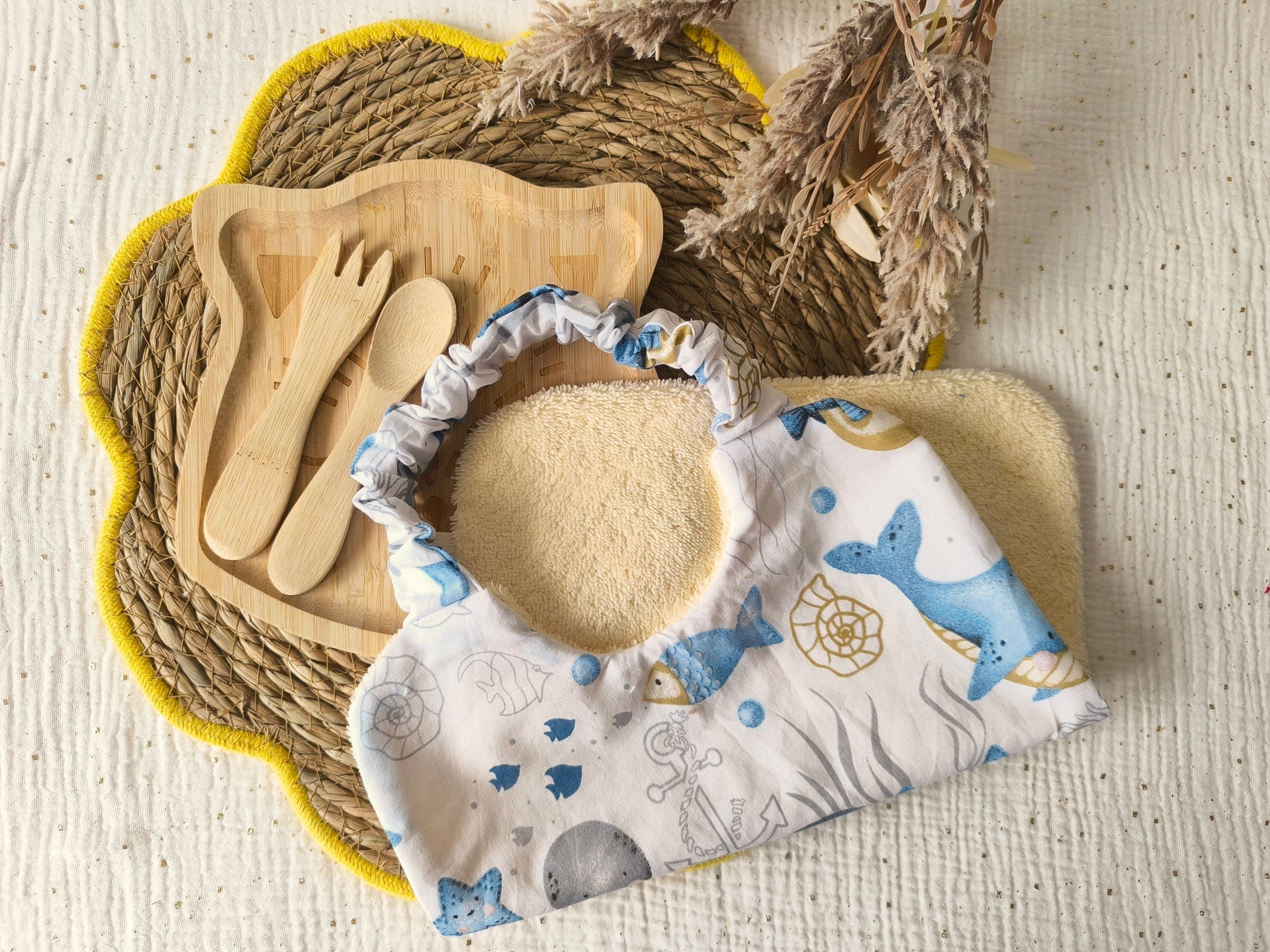 Avec son tour de cou élastiqué, votre enfant pourra l’enfiler (et l’enlever!) tout seul comme un grand, pour qu’il soit autonome lors des repas. 🎉