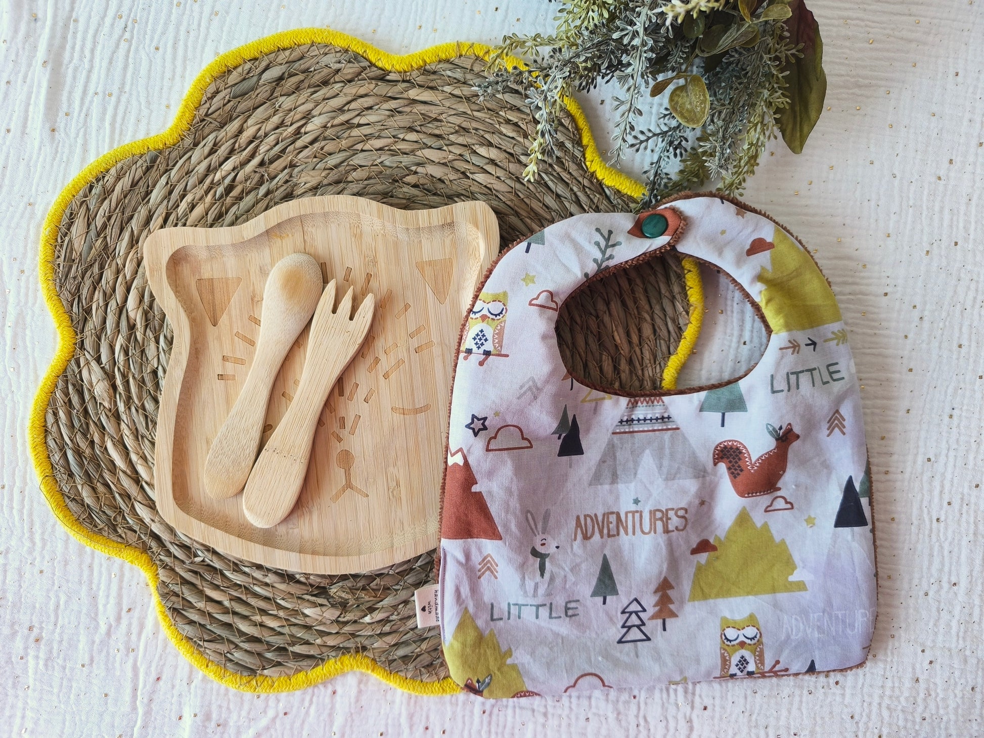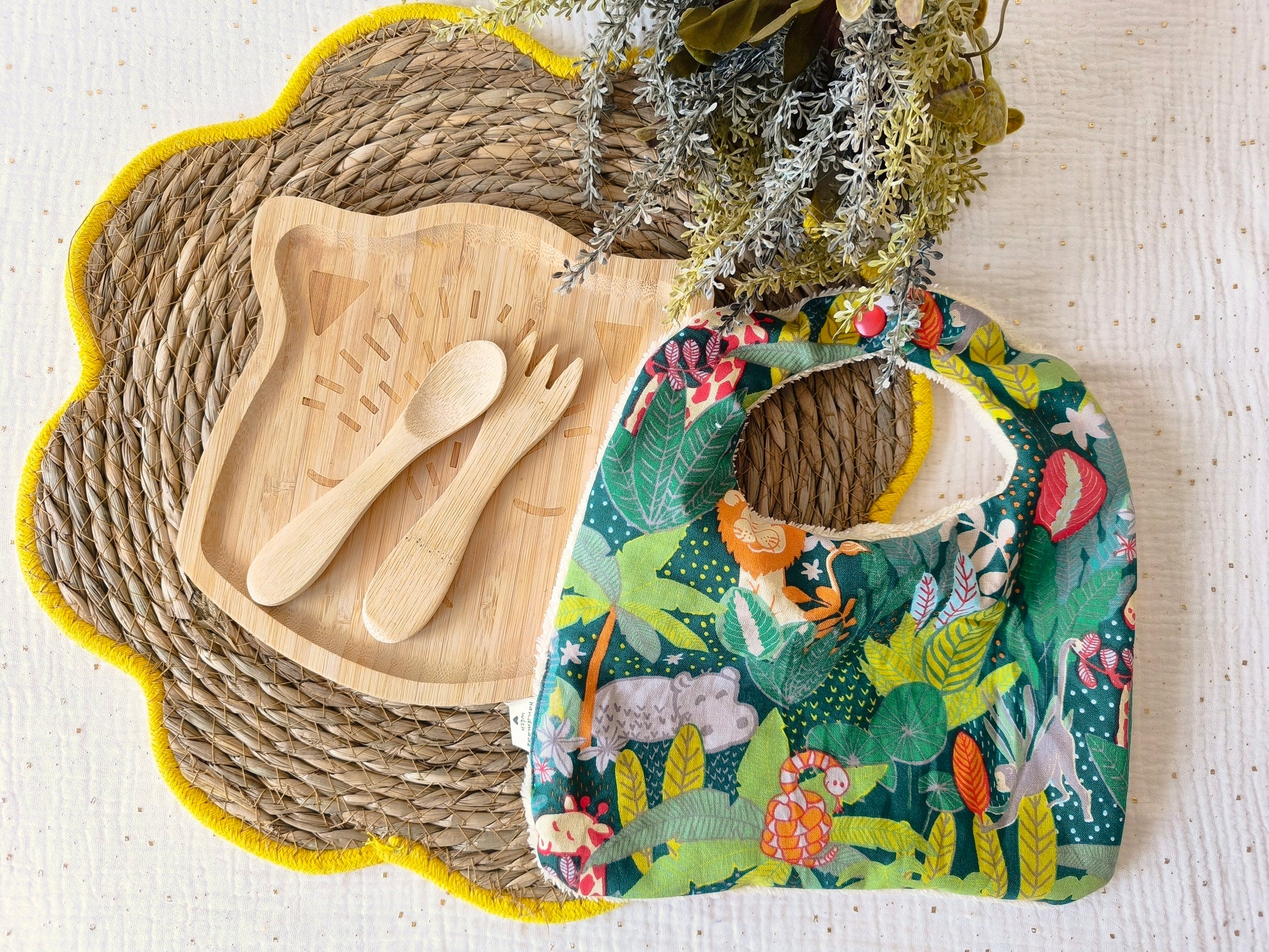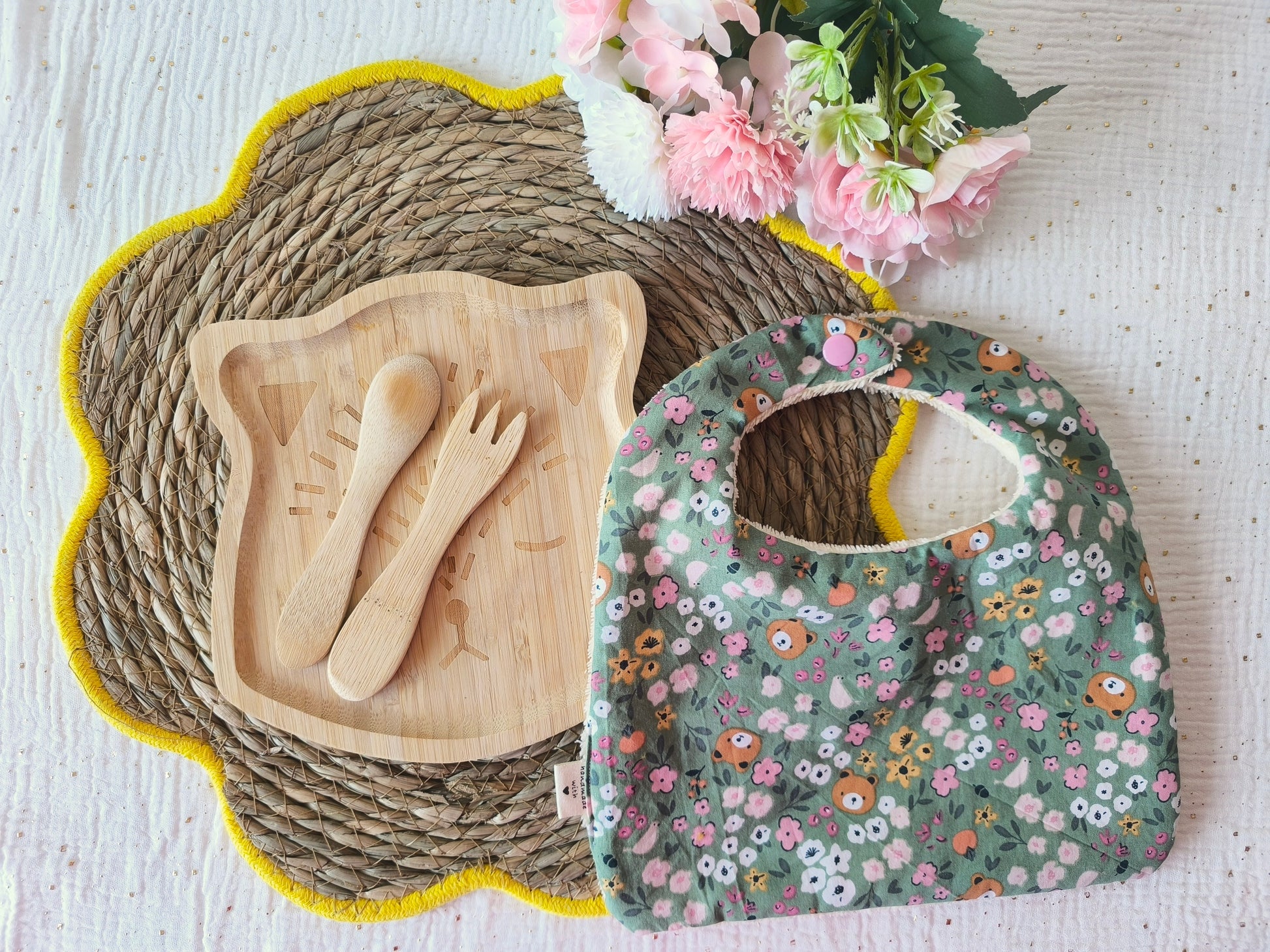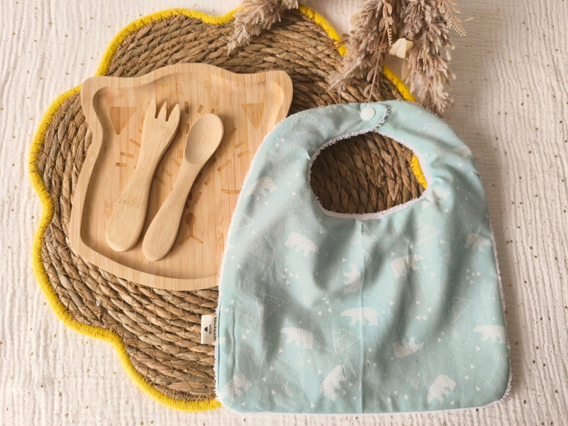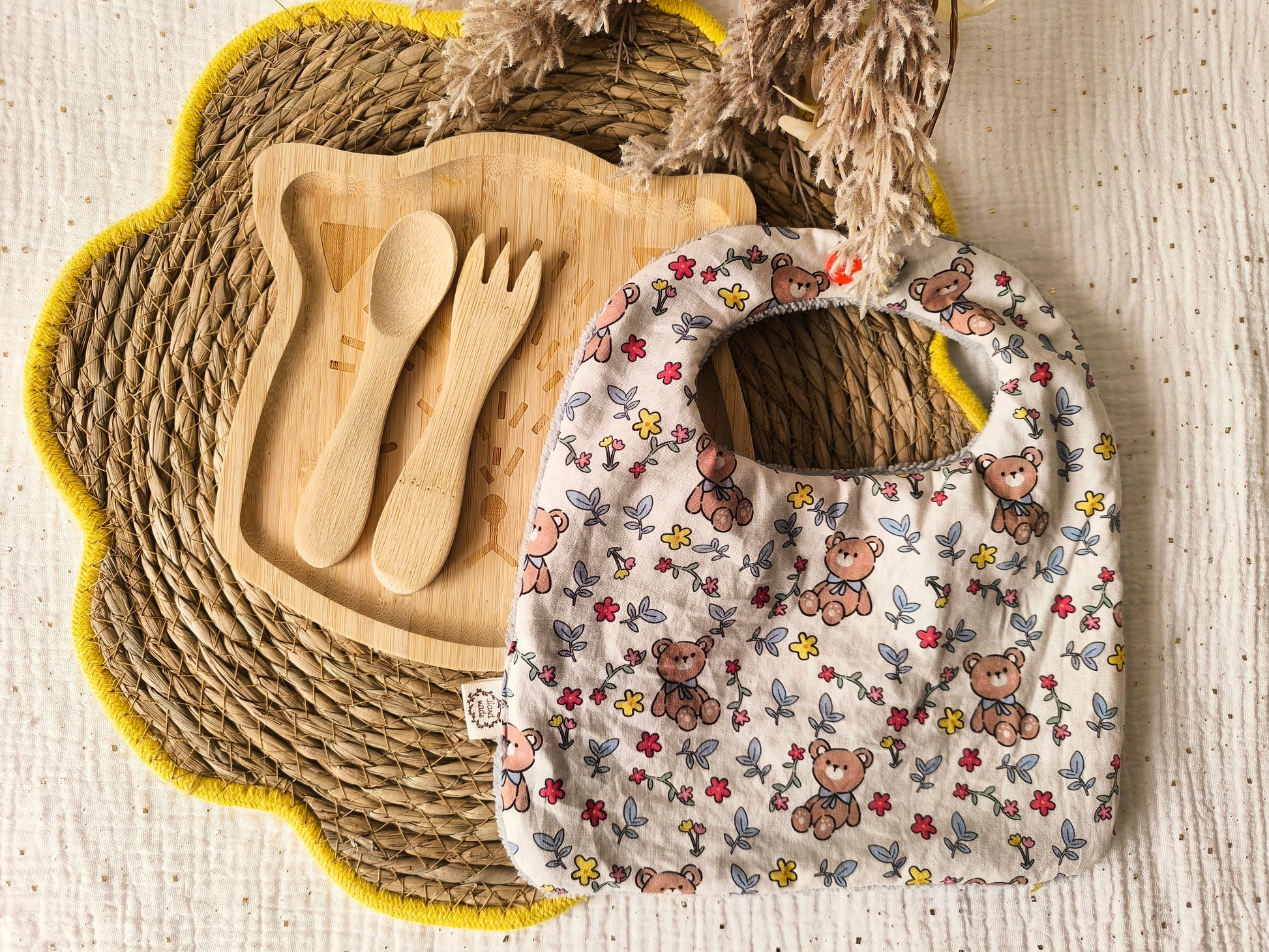 Avec nos motifs mignons 🐻, les repas sont encore plus amusants et les habits sont protégés !