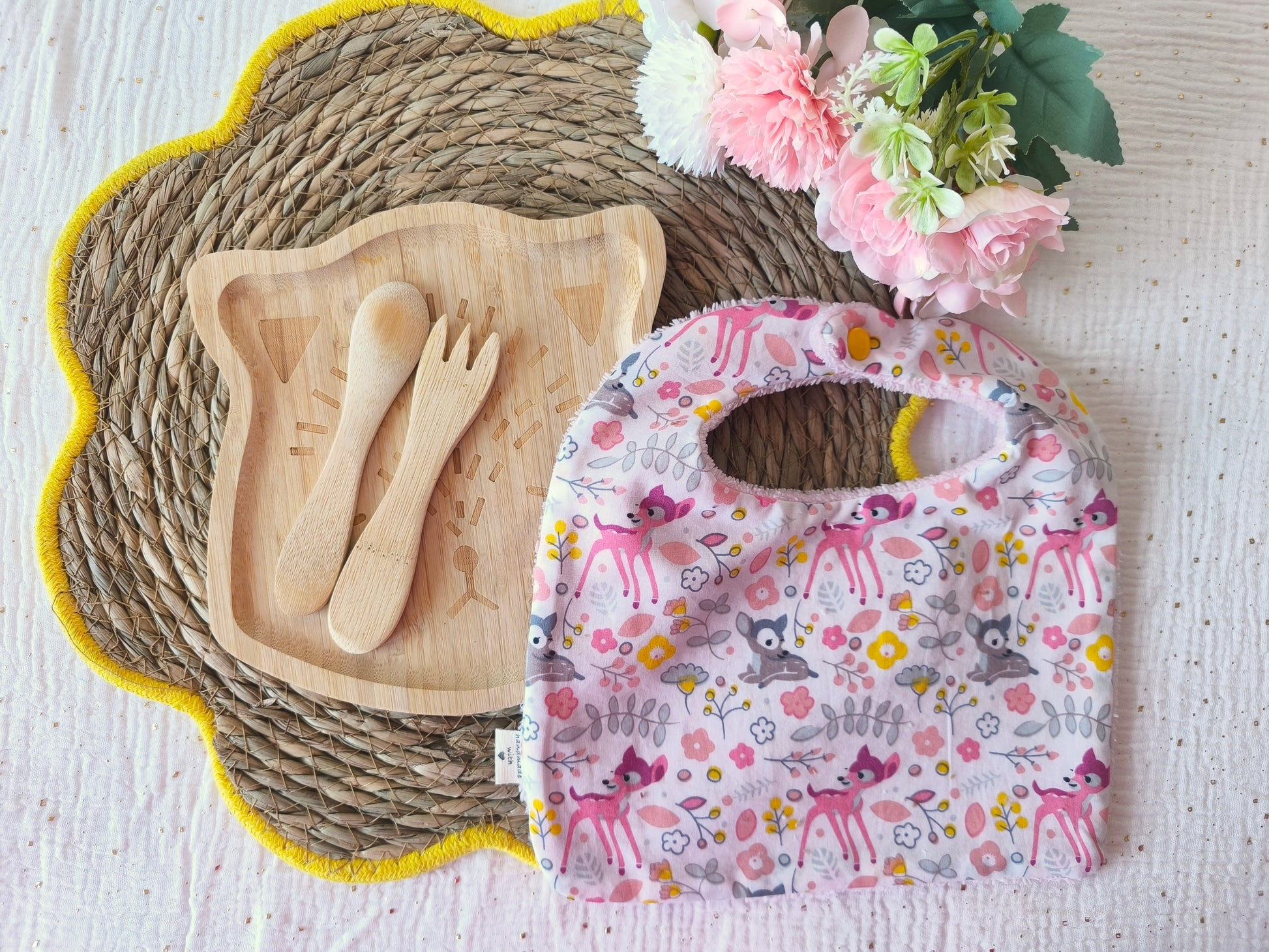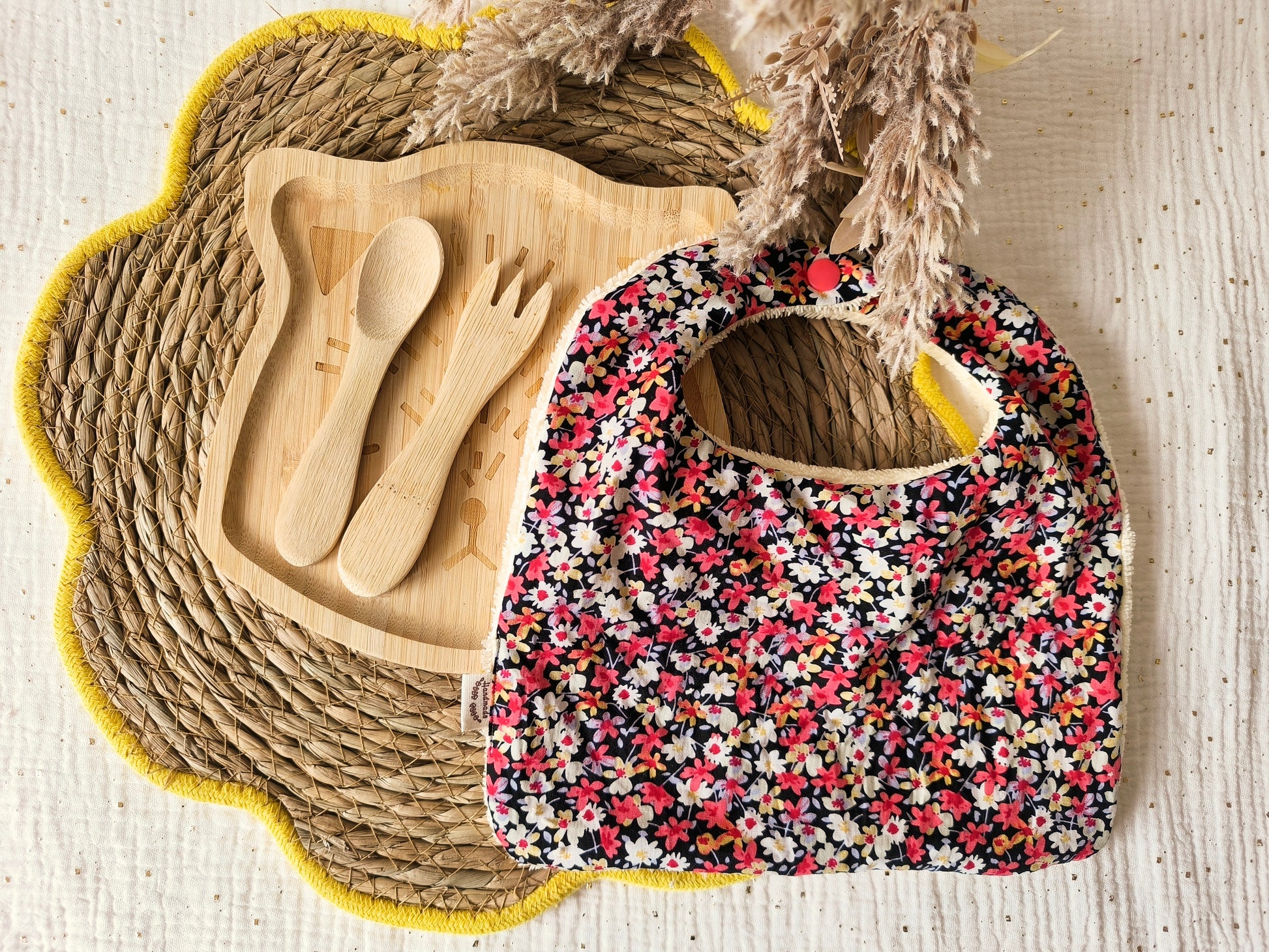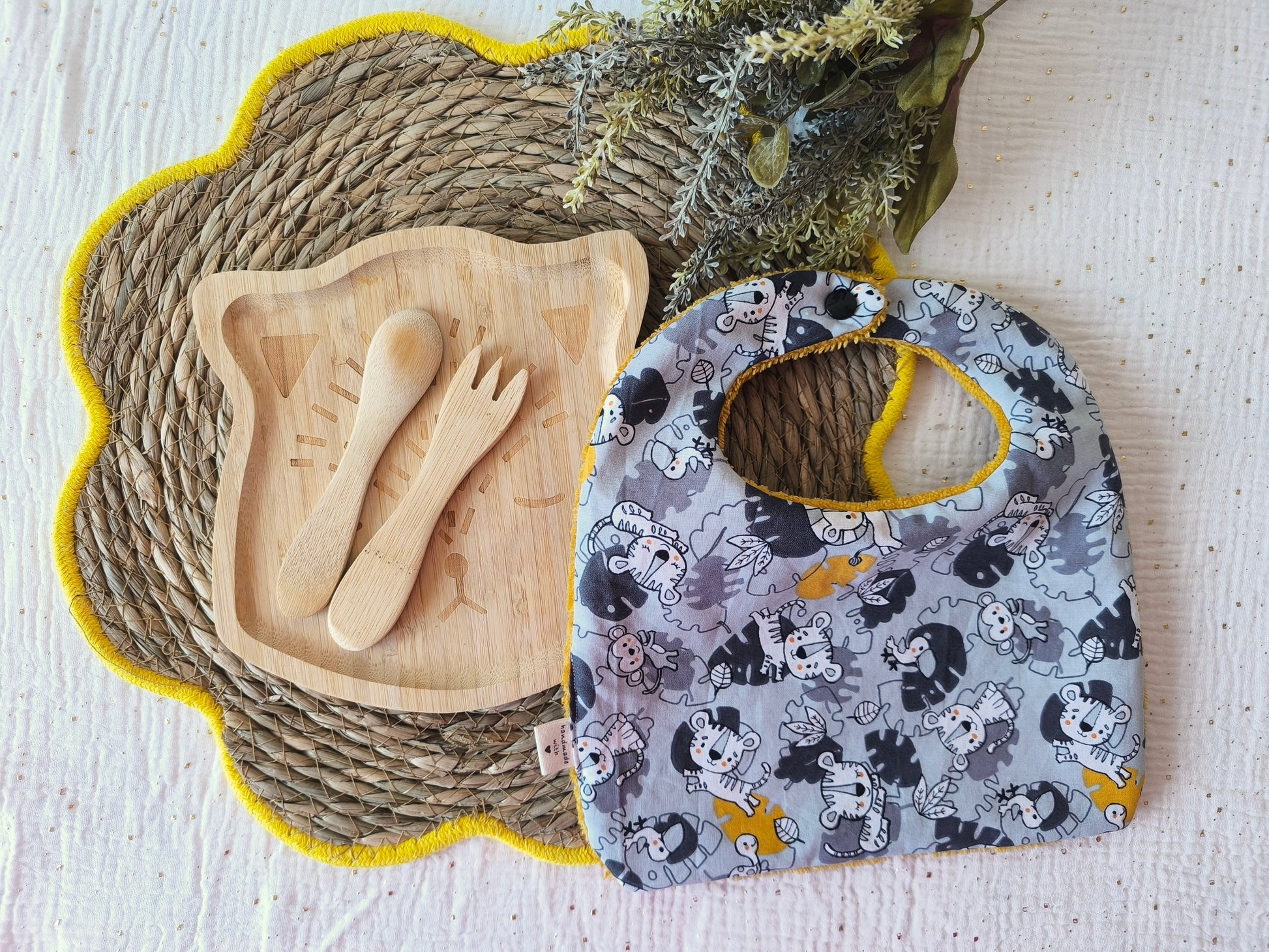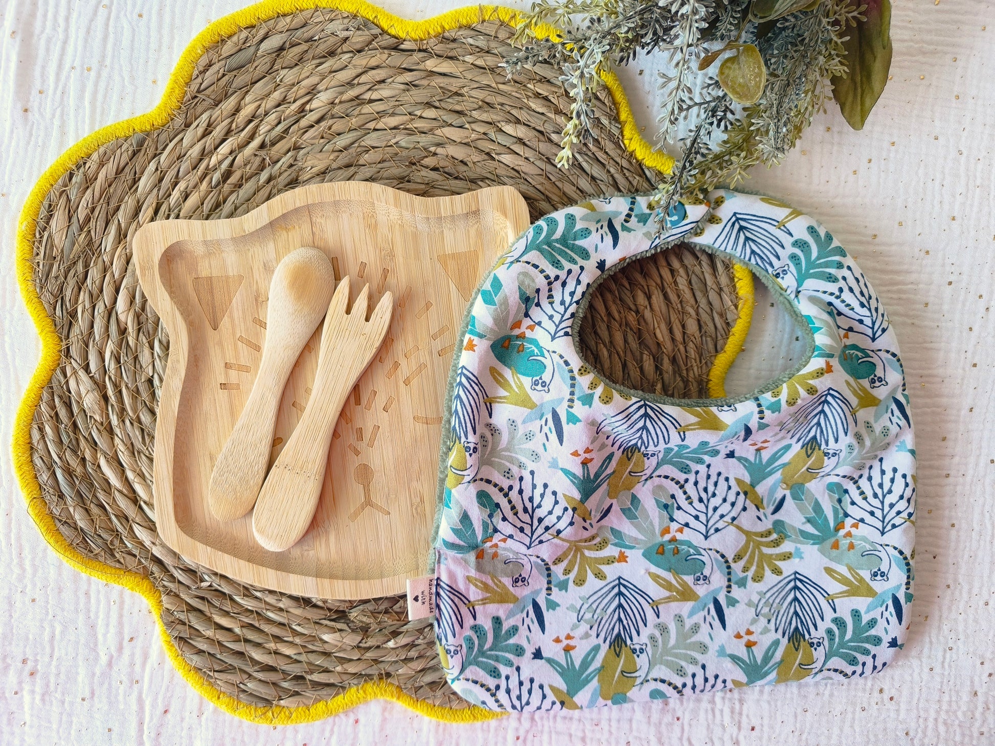 Conçu en tissu coton et tissu éponge bambou, ce bavoir nettoie la bouche de votre enfant tout en douceur💛.