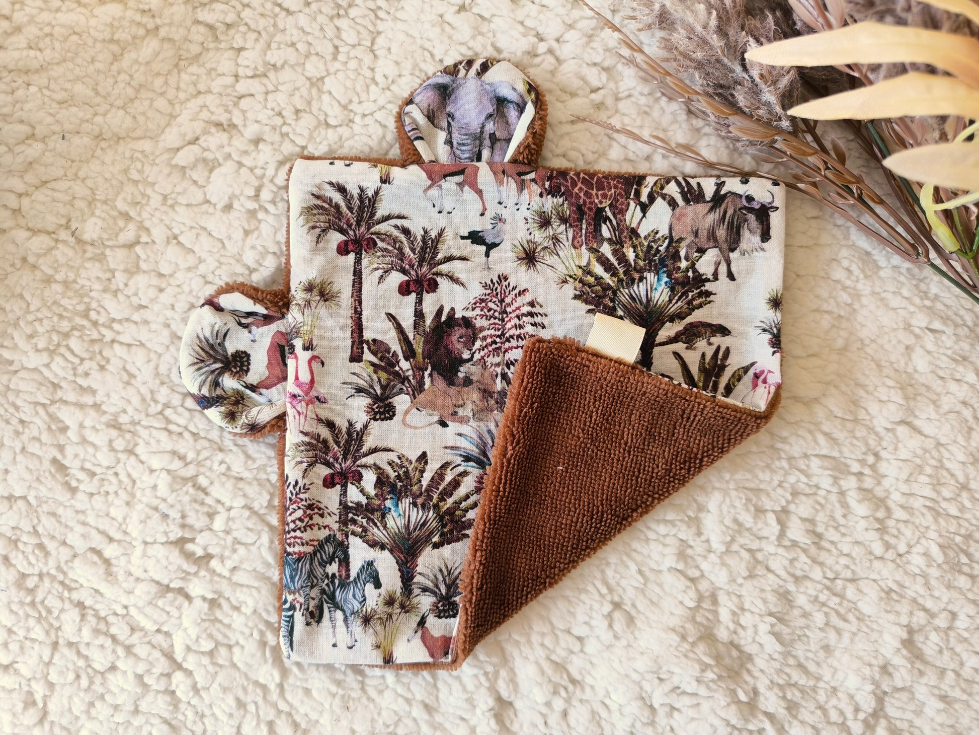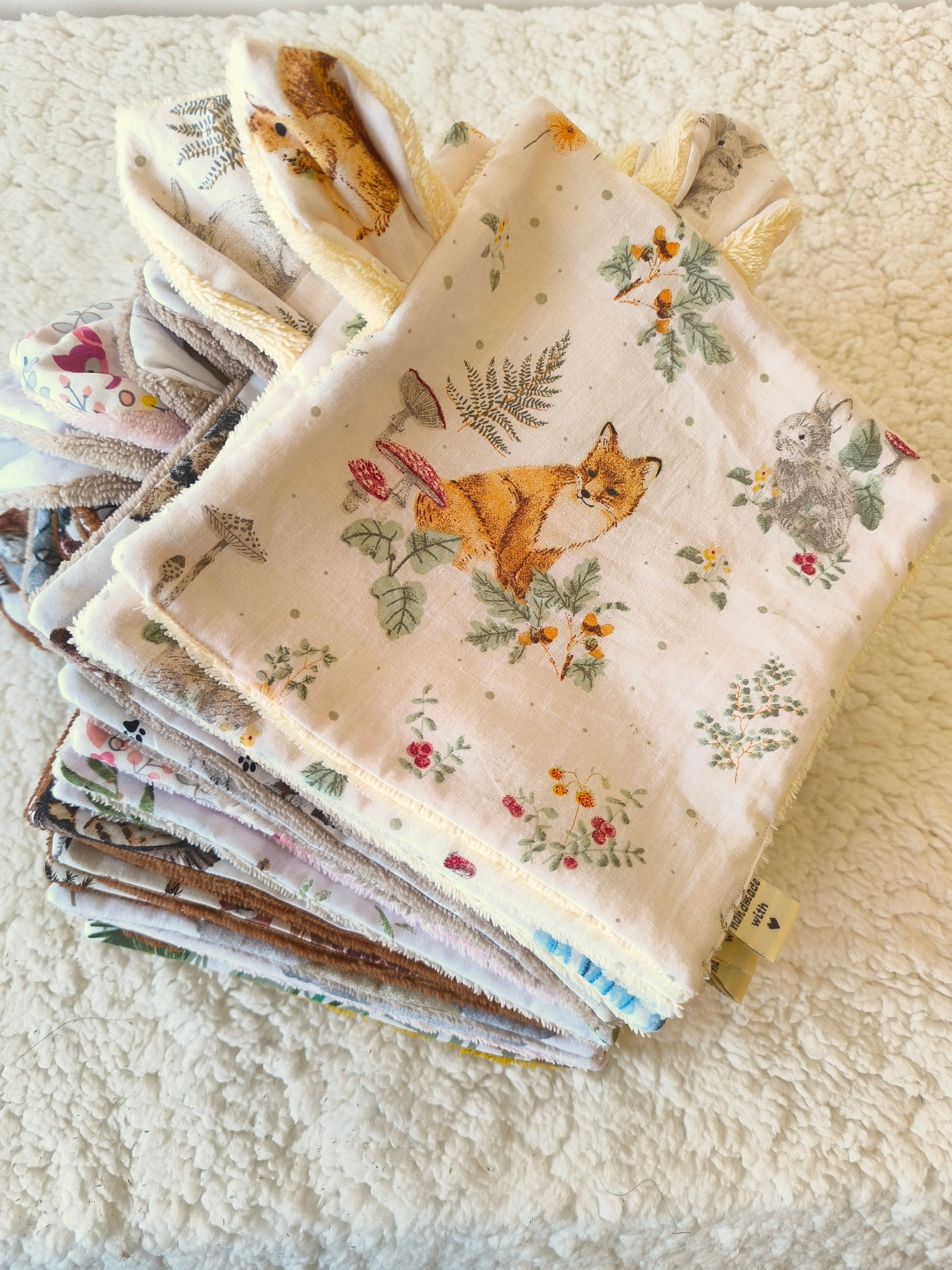 Lingette / débarbouillette / Serviette avec oreille d’animal, en éponge bambou et coton mignon