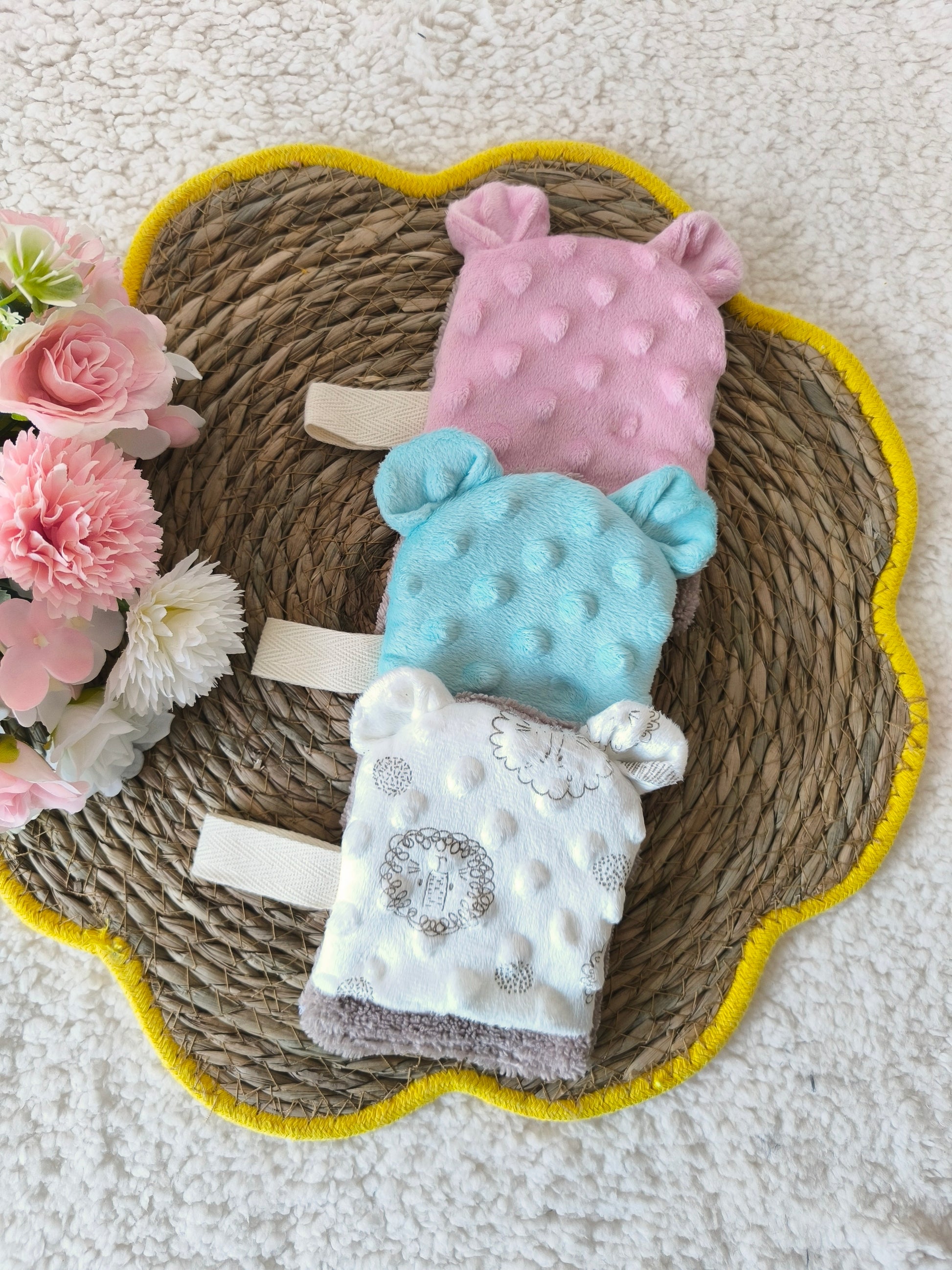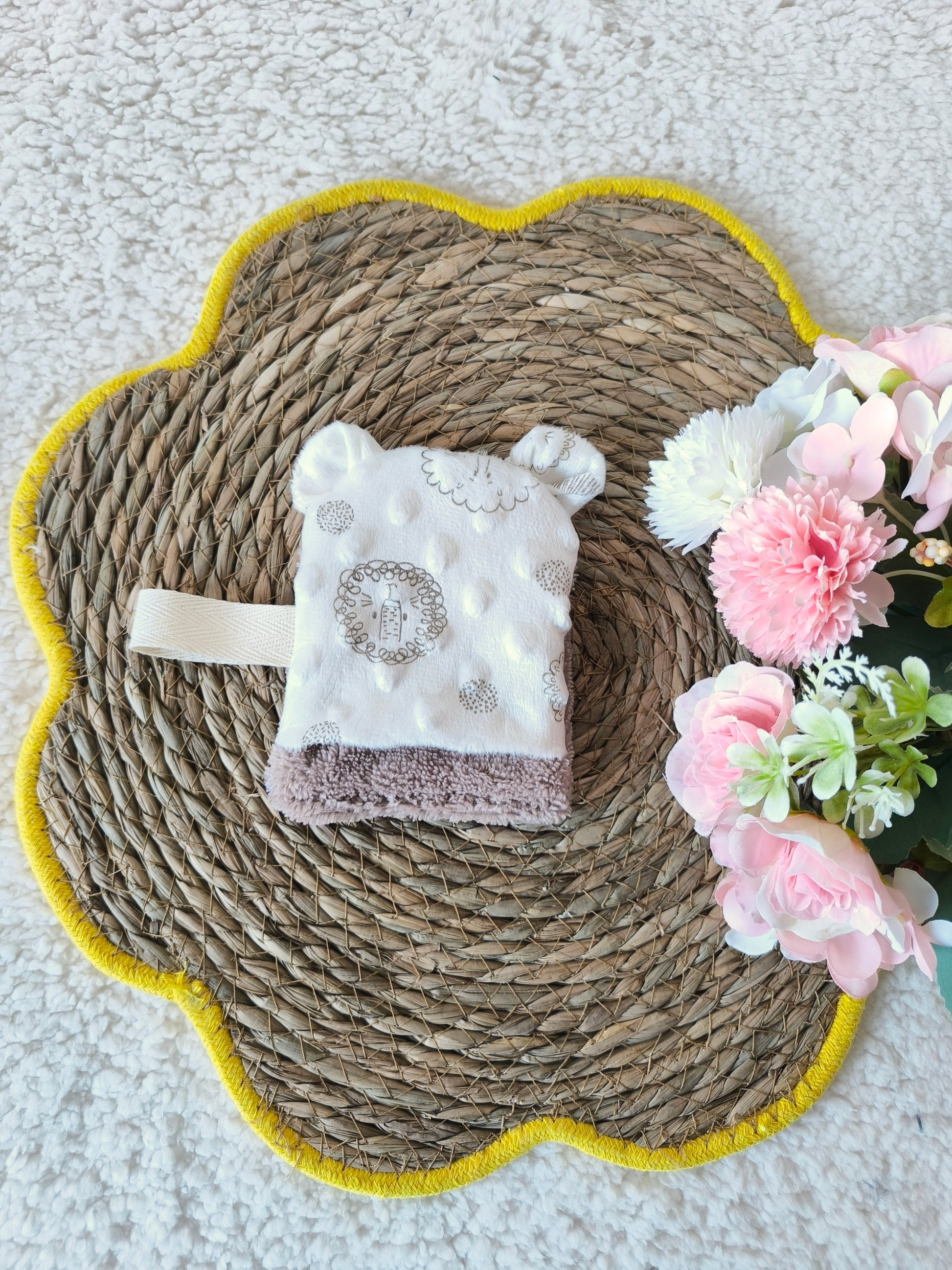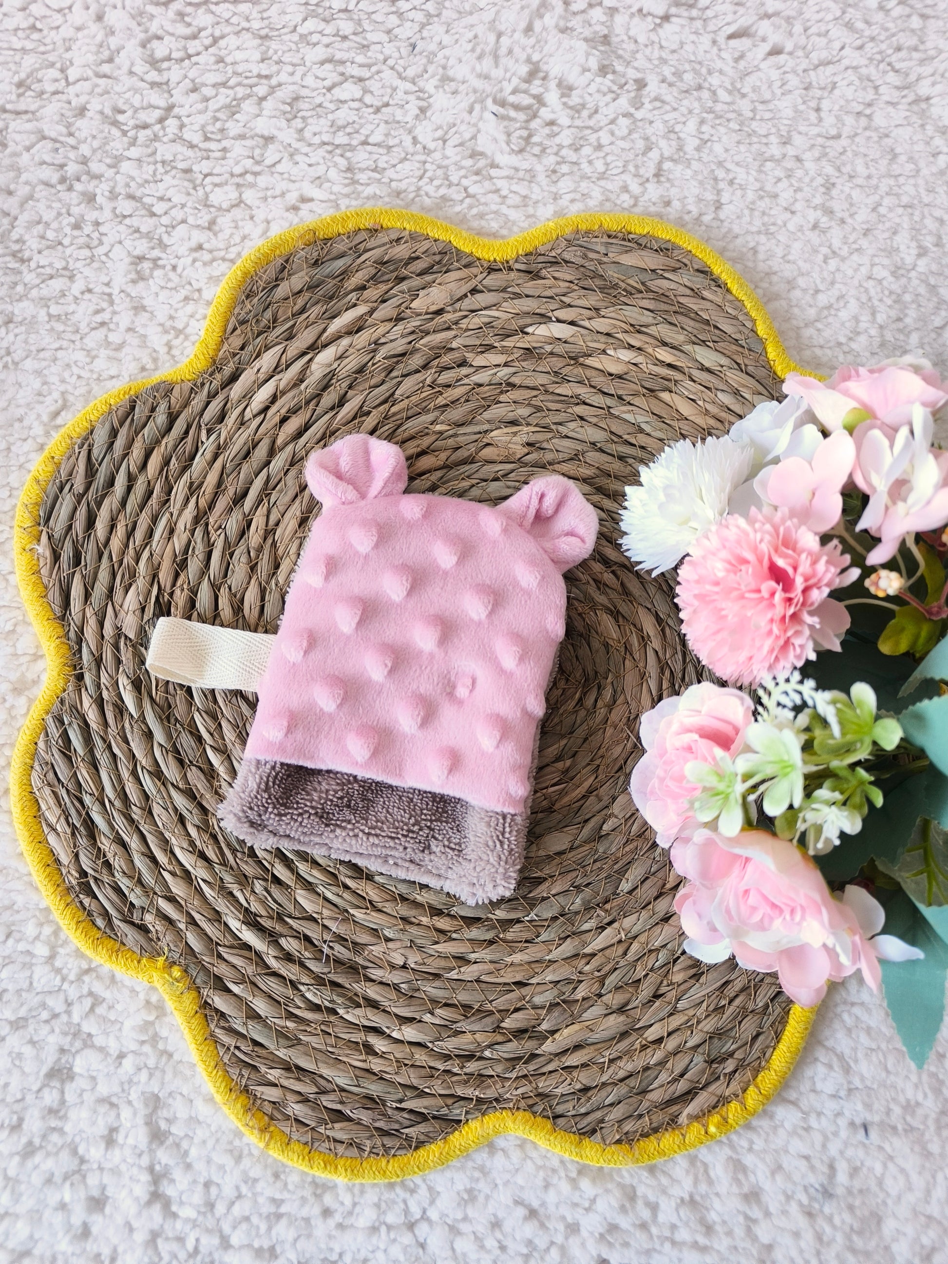 Gant de toilette réversible pour enfant en tissu éponge bambou et minky avec des petites oreilles