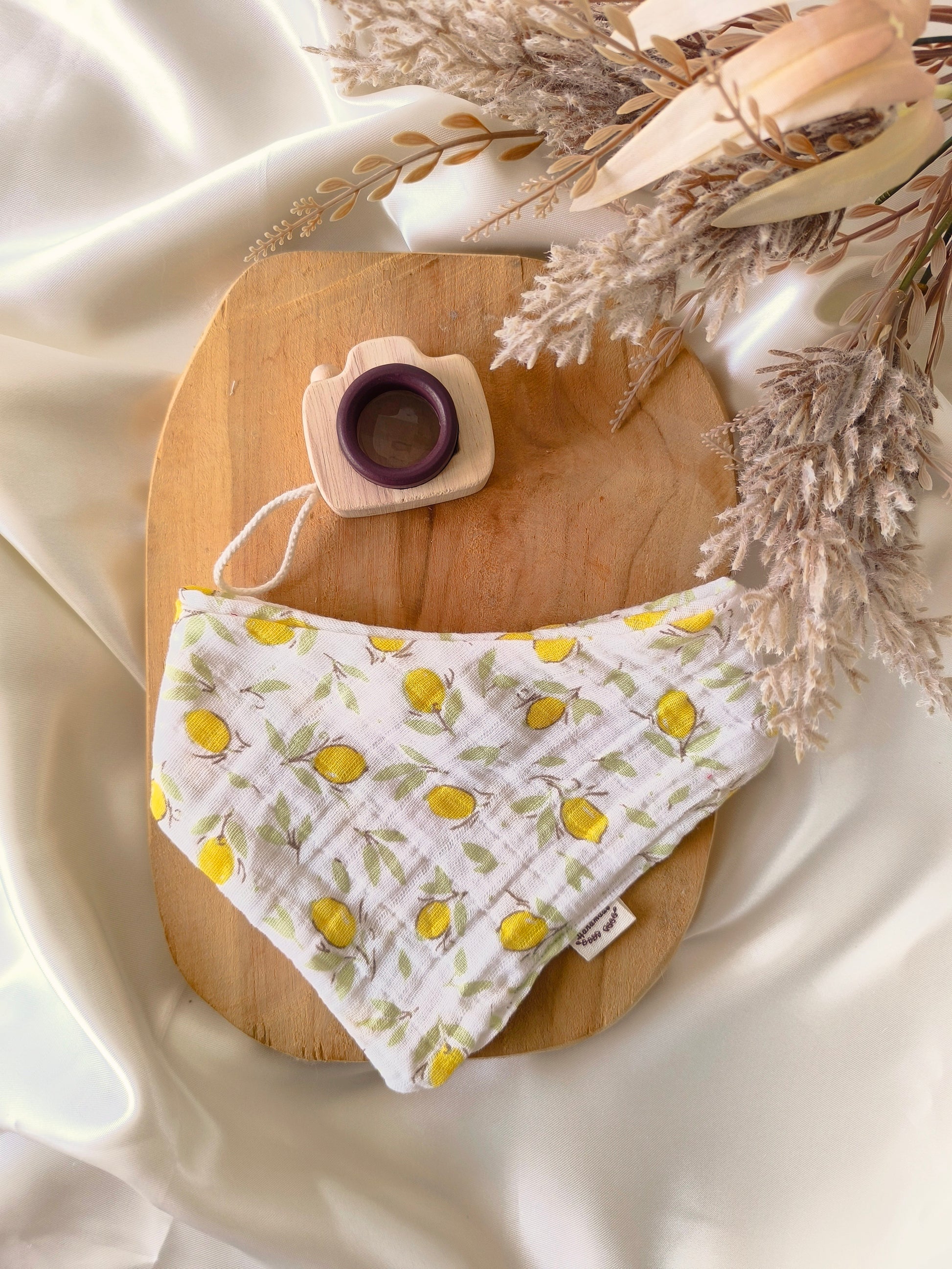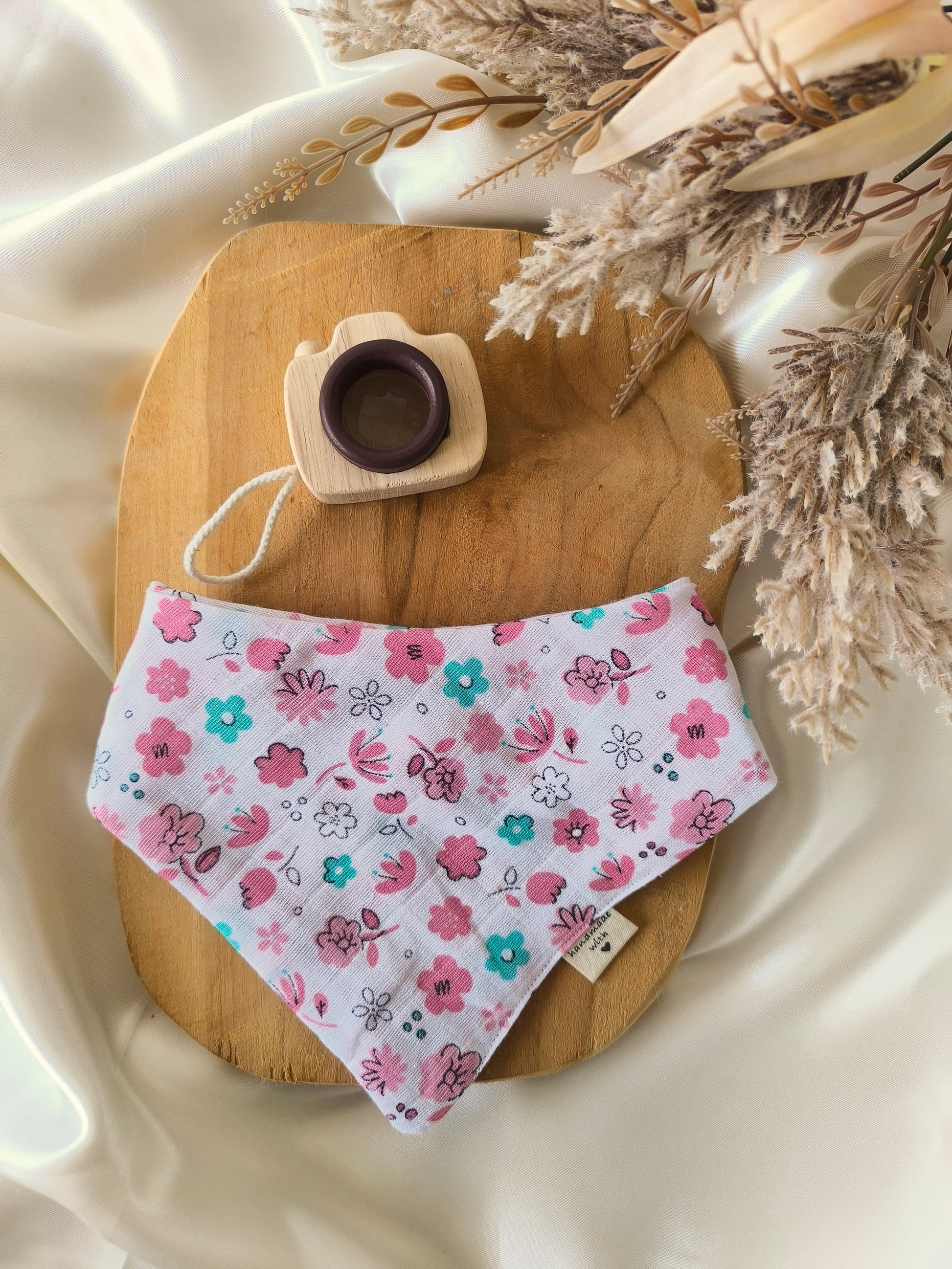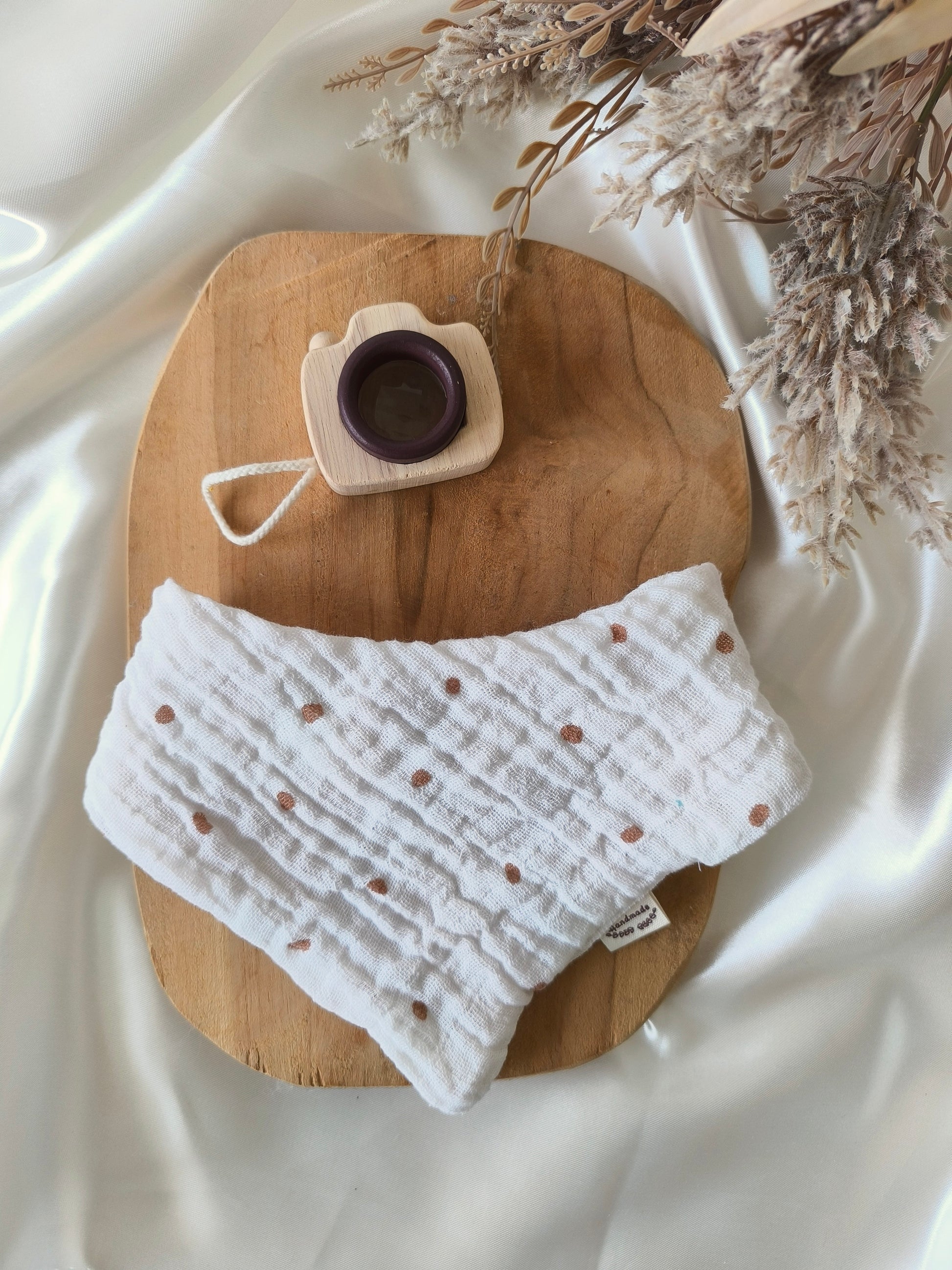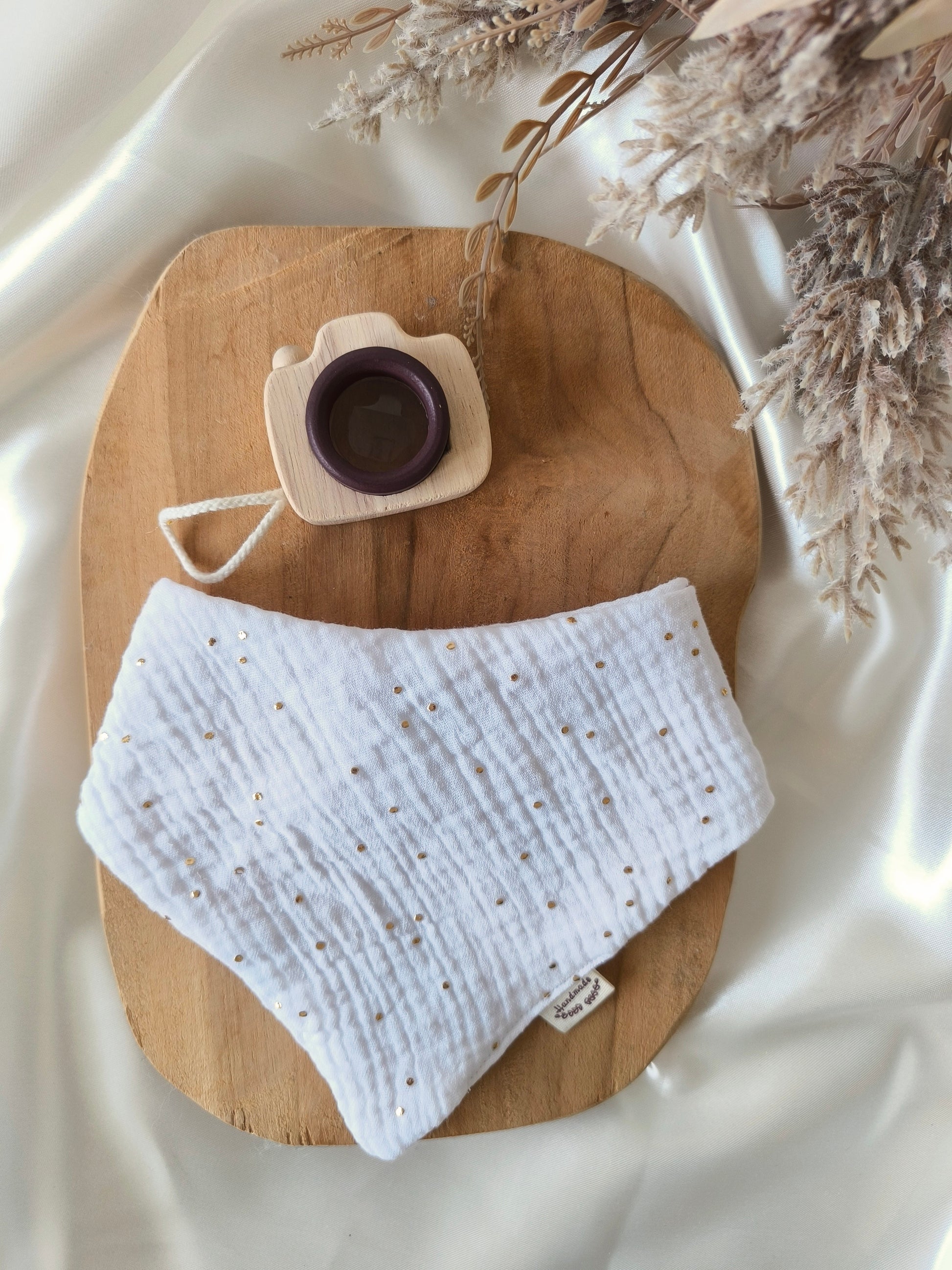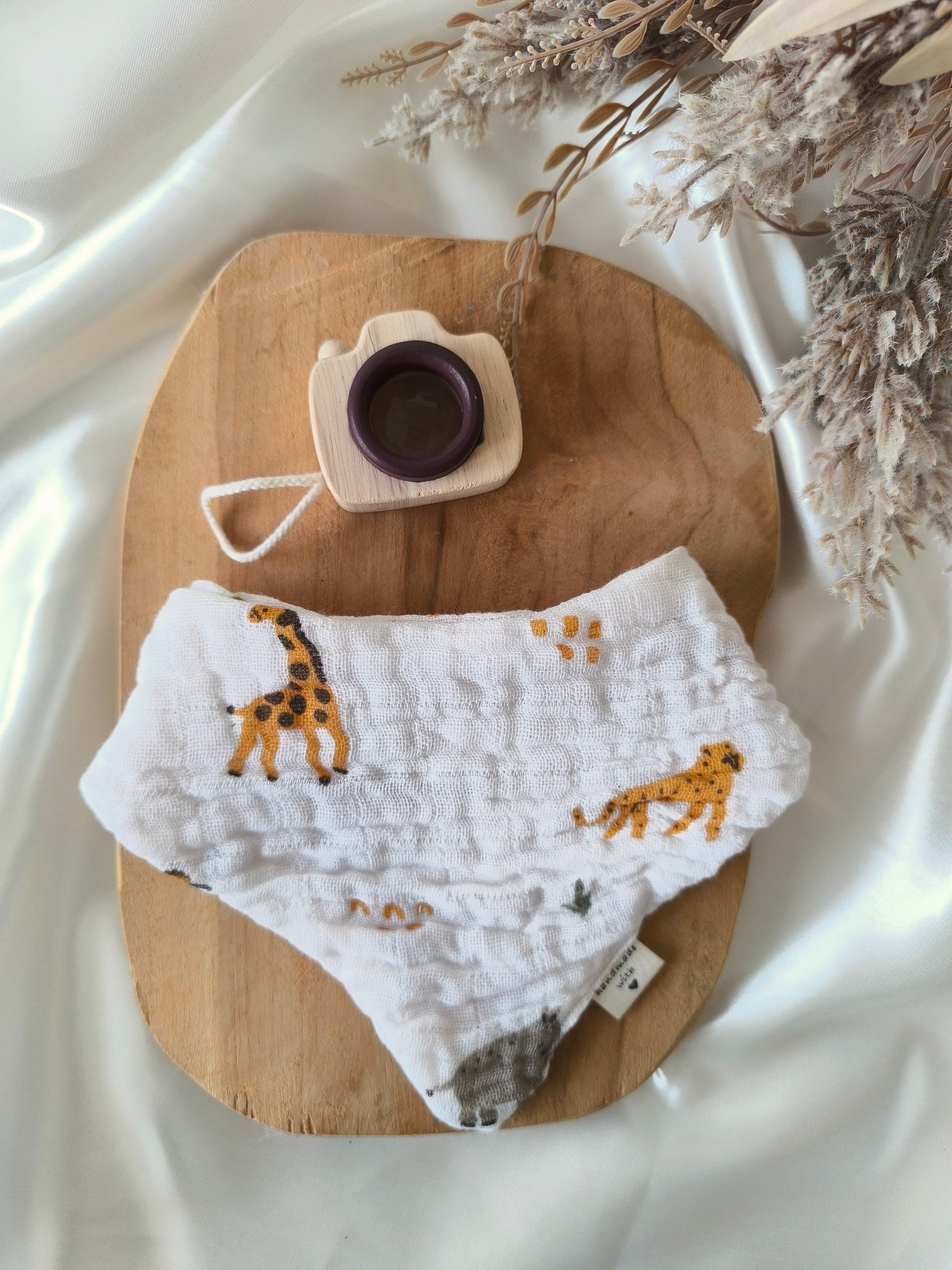 Conçu en double gaze de coton, ce bavoir éponge doucement la bavouille de votre petit.