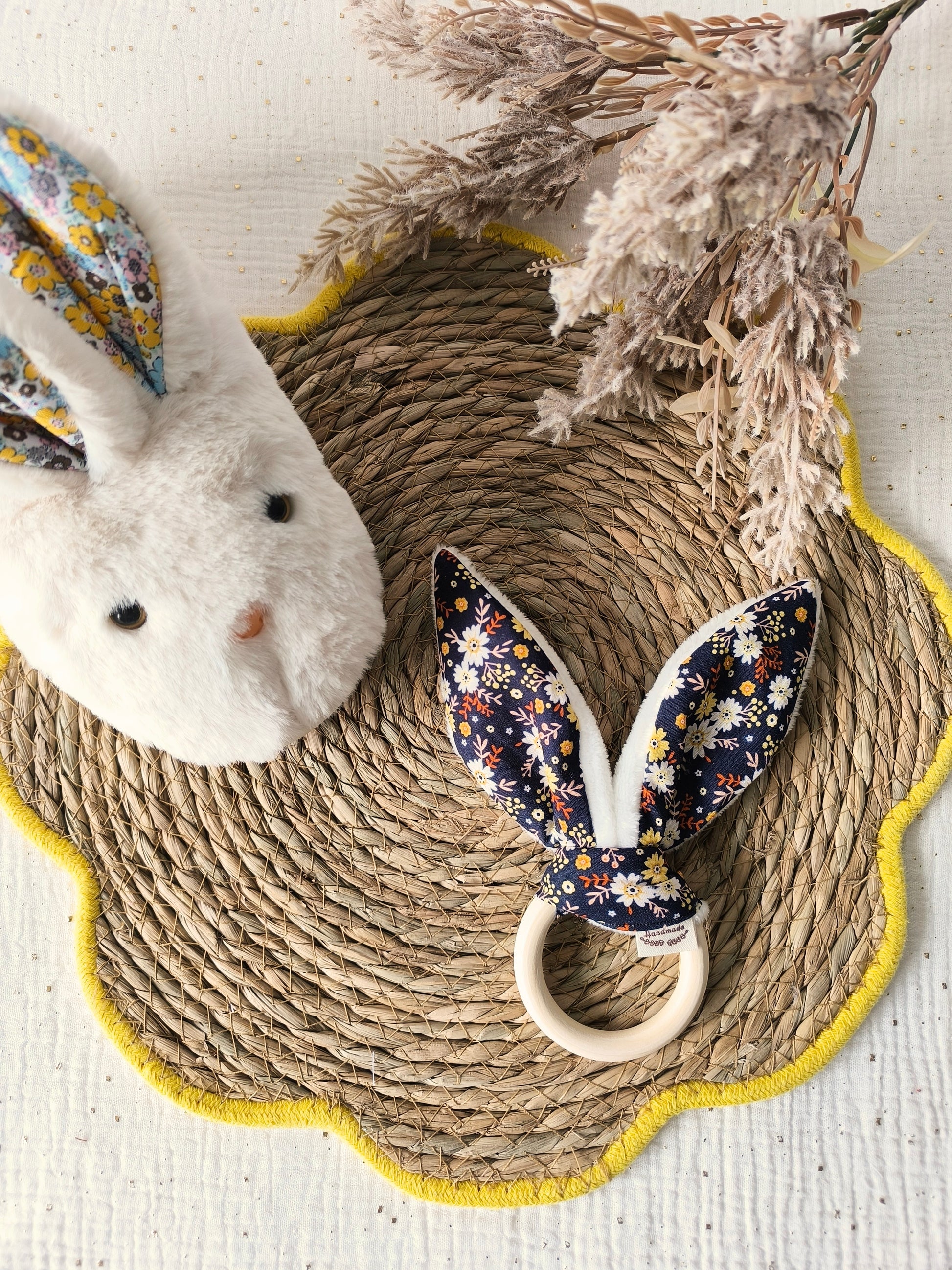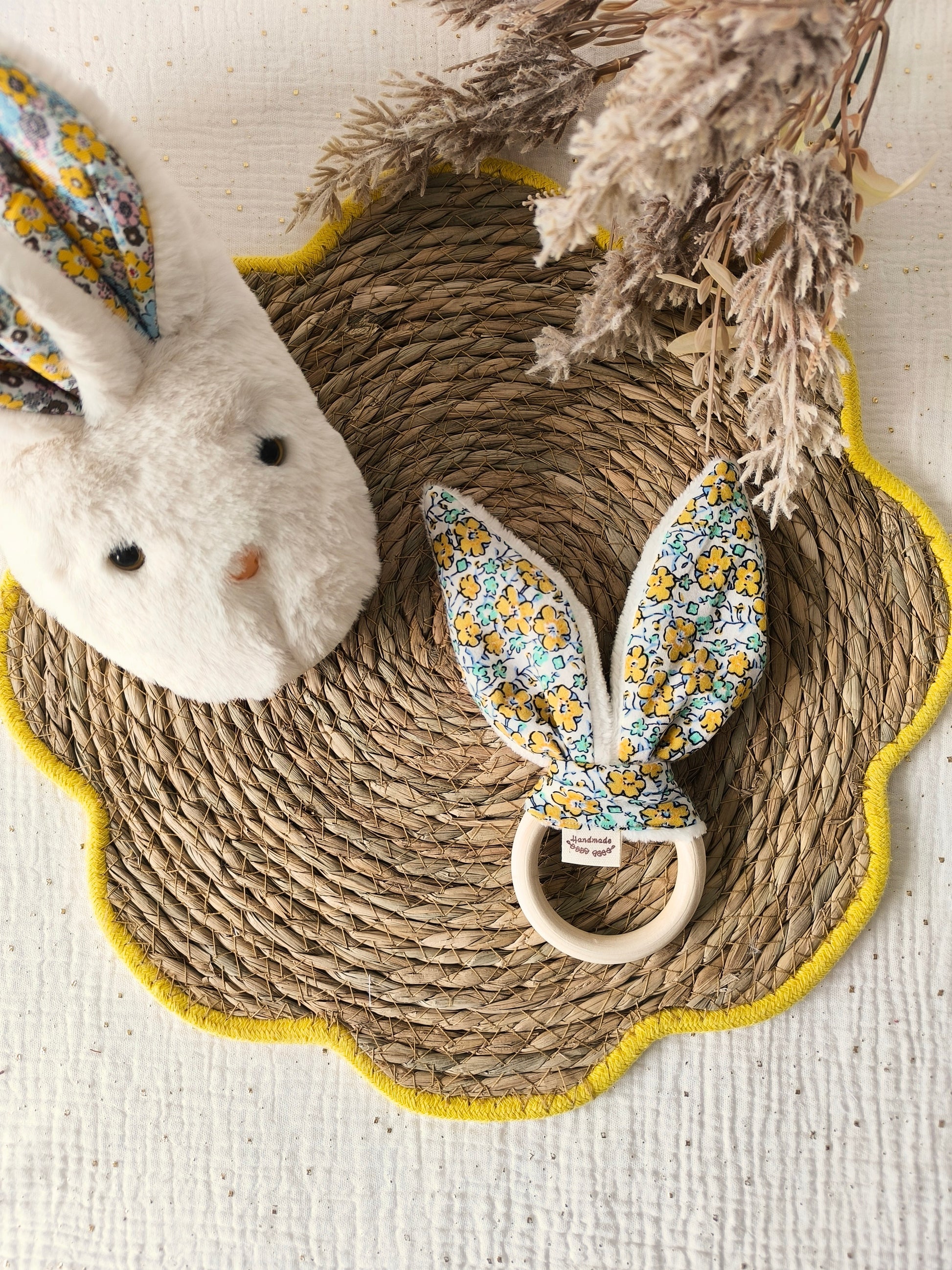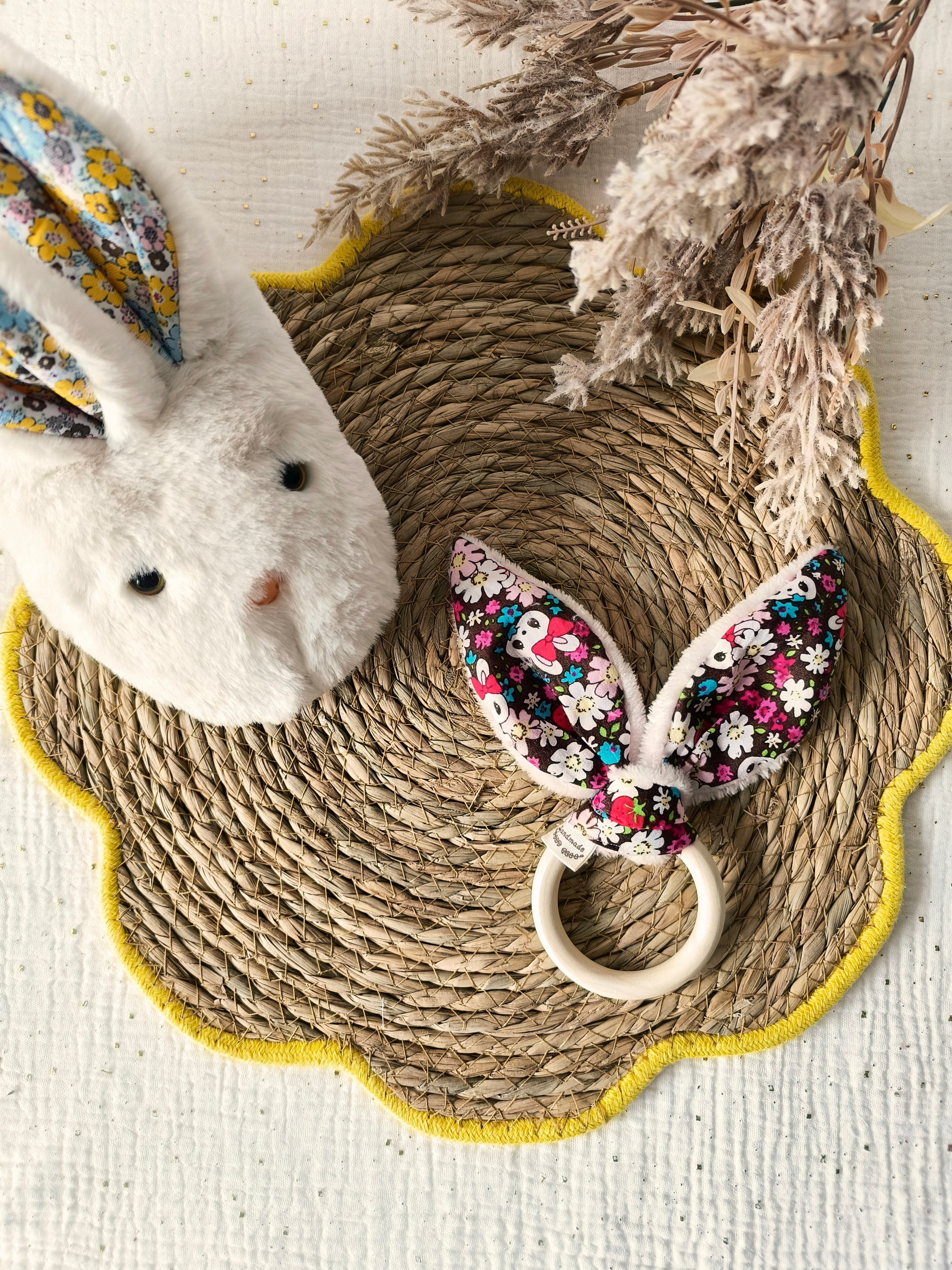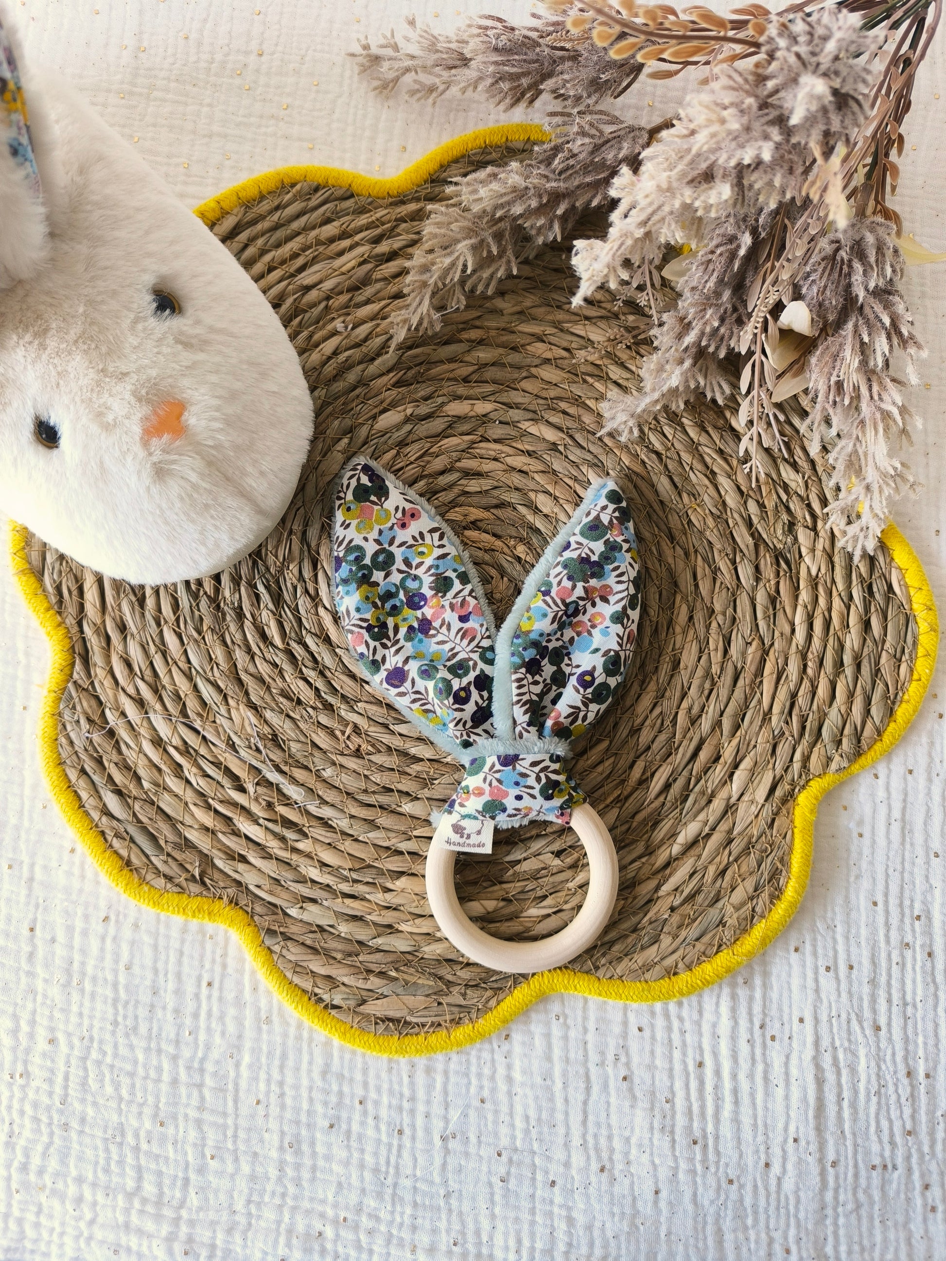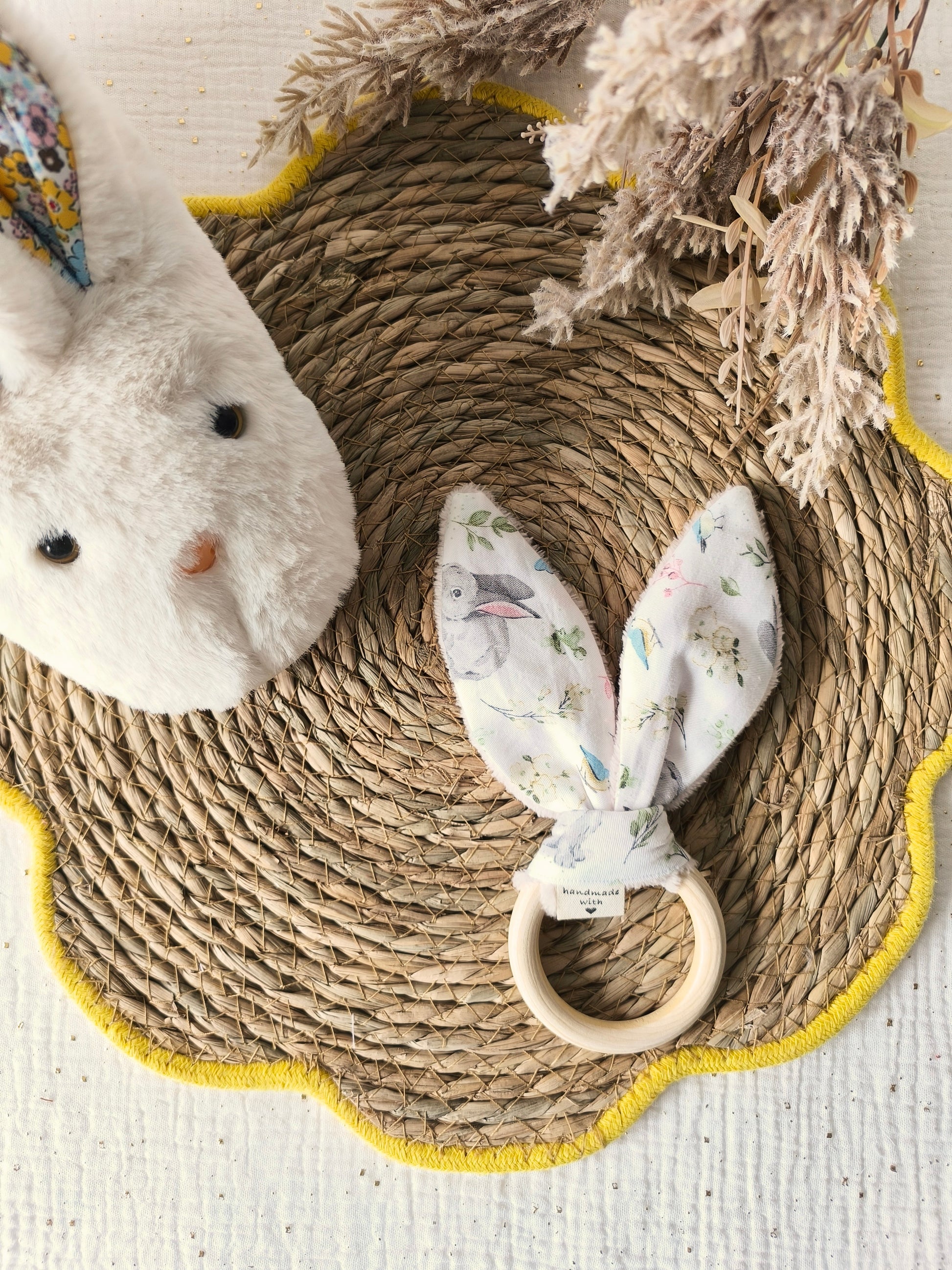 Son anneau en bois naturel est idéal pour soulager les gencives, tandis que ses oreilles en polaire doudou et coton offrent une texture ultra douce et apaisante à câliner 🧸.