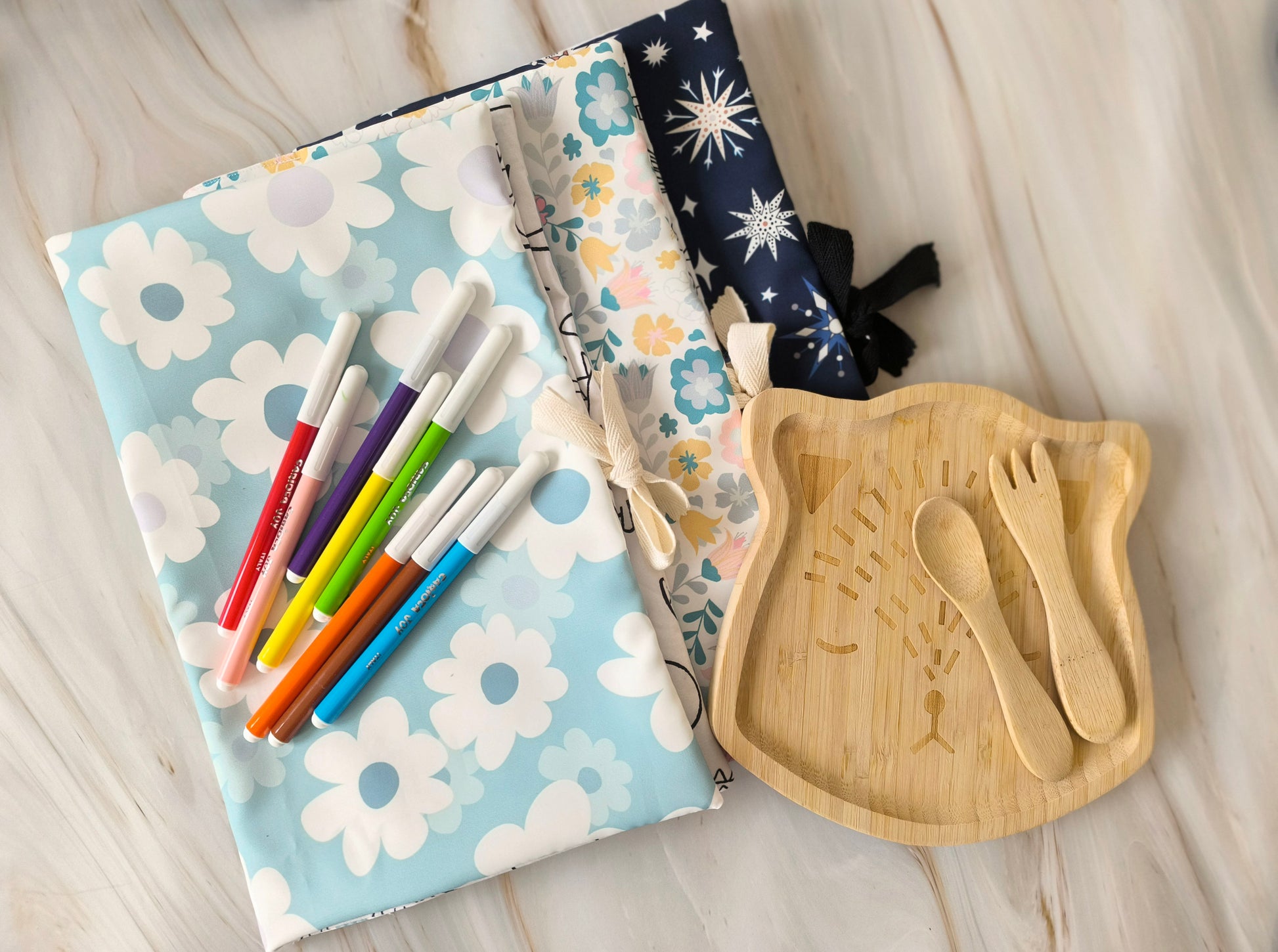 ✔️ Deux rubans en coton pour plier et fermer le set malin et l’emporter partout