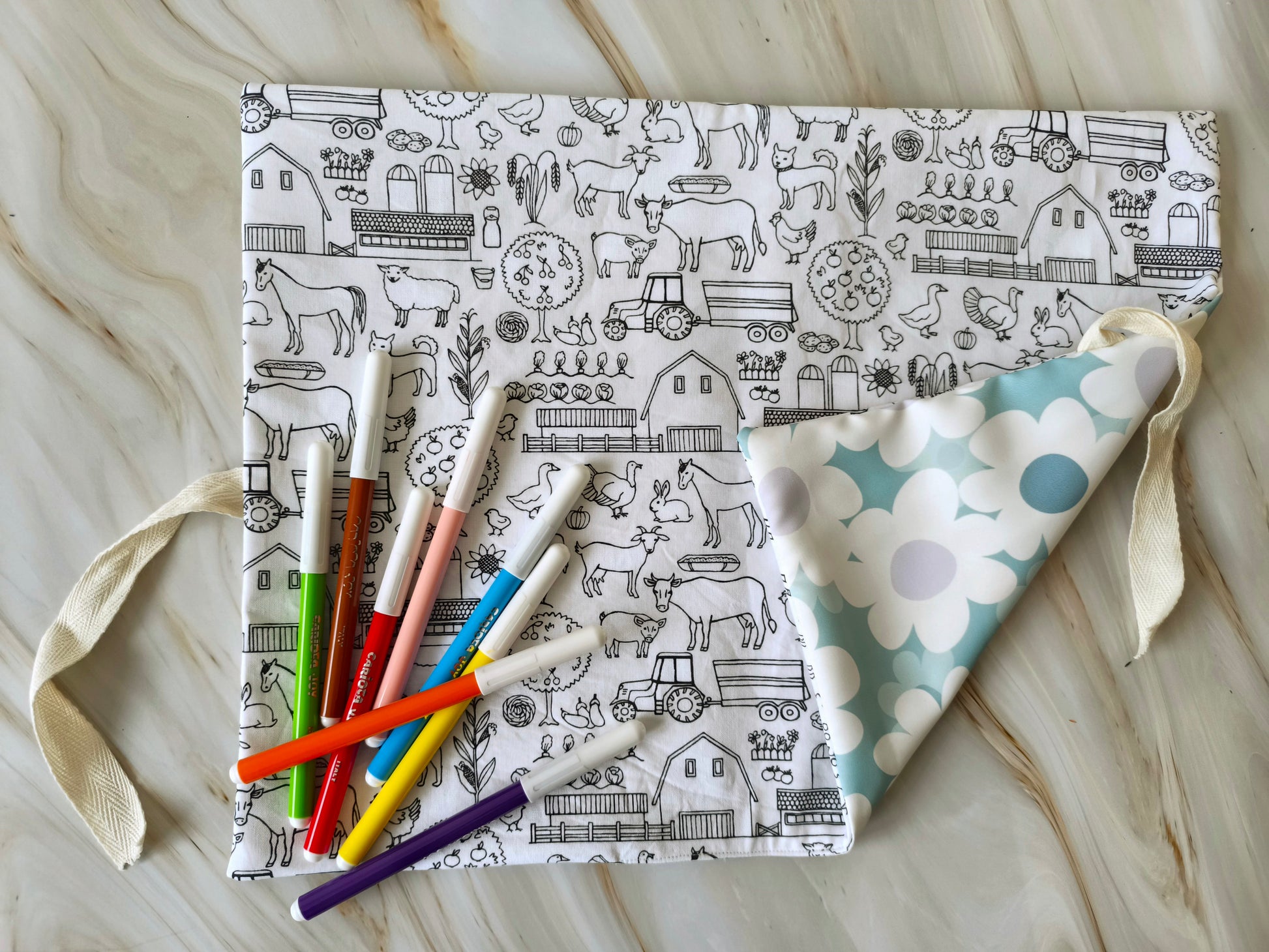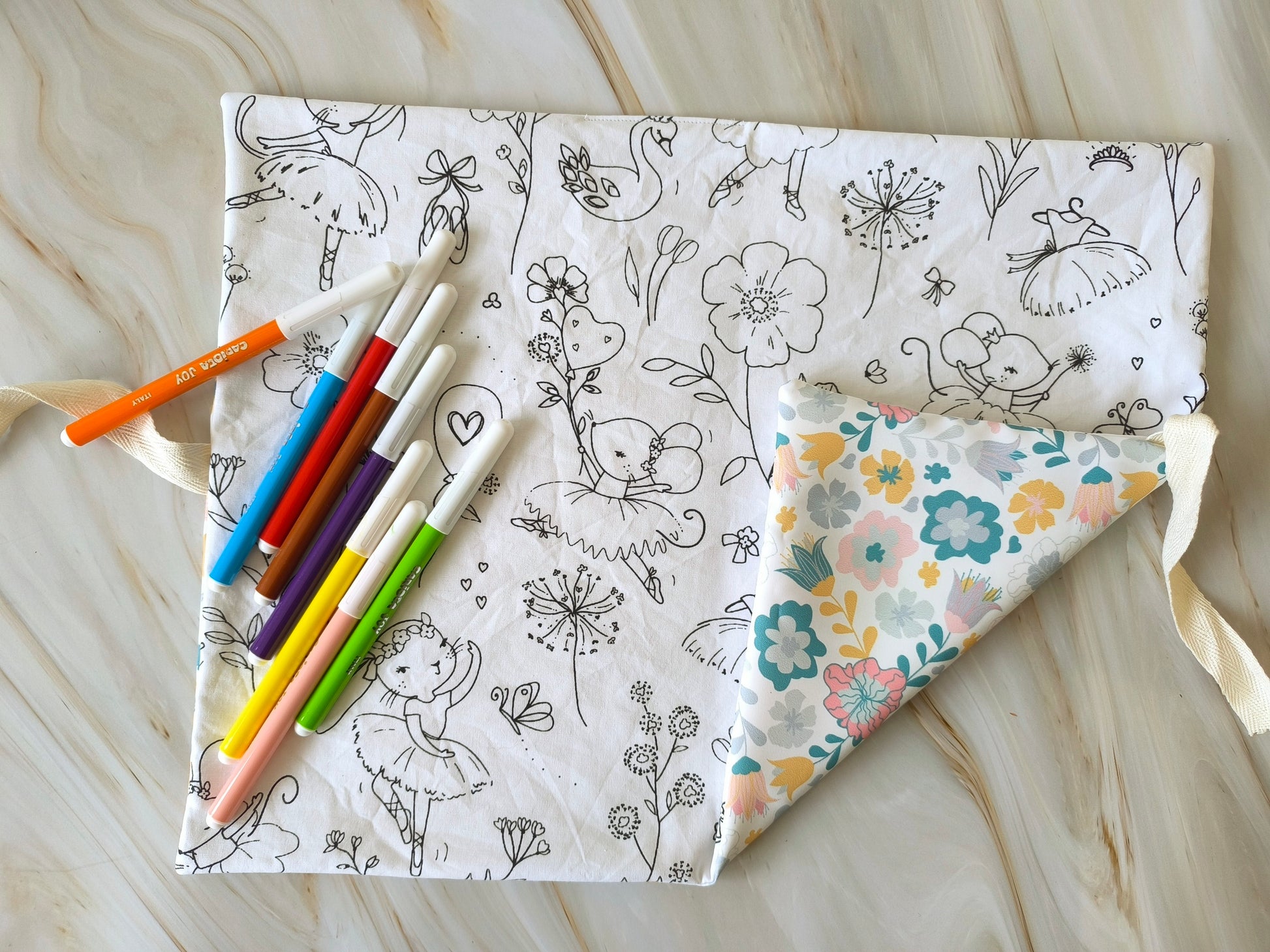 Set de table coloriage en tissu lavable (feutres lavables fournis)