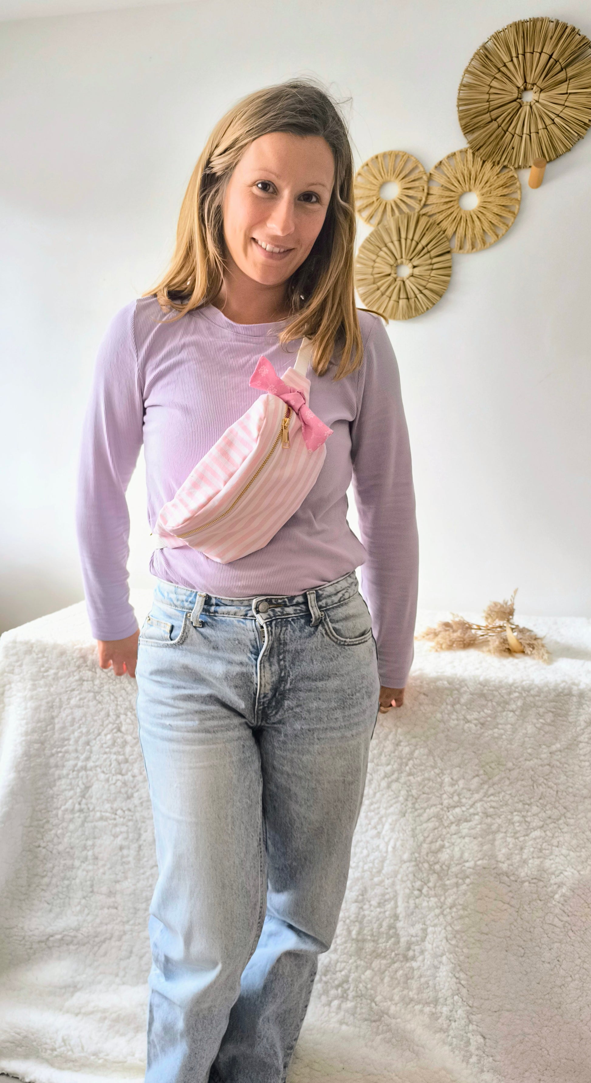 Une banane élégante et format « pocket » pour sortir avec l’essentiel : un portefeuille, un portable et des clés