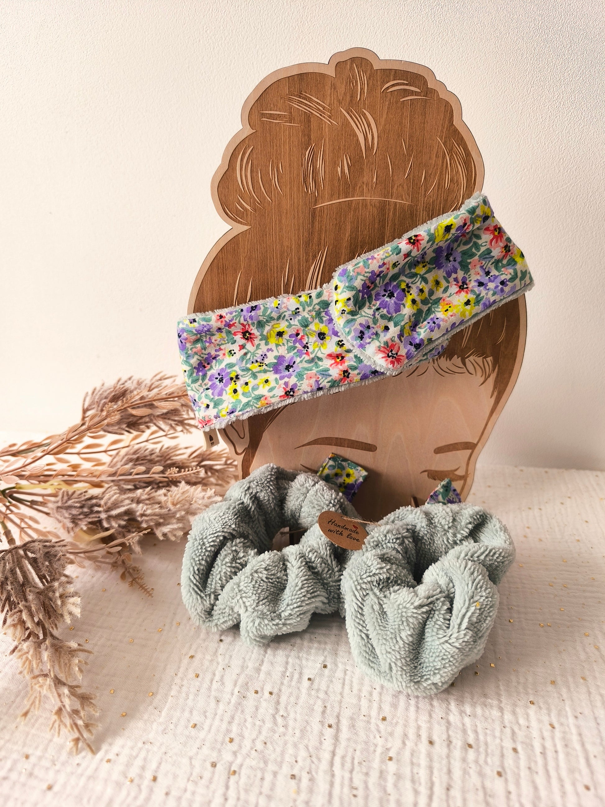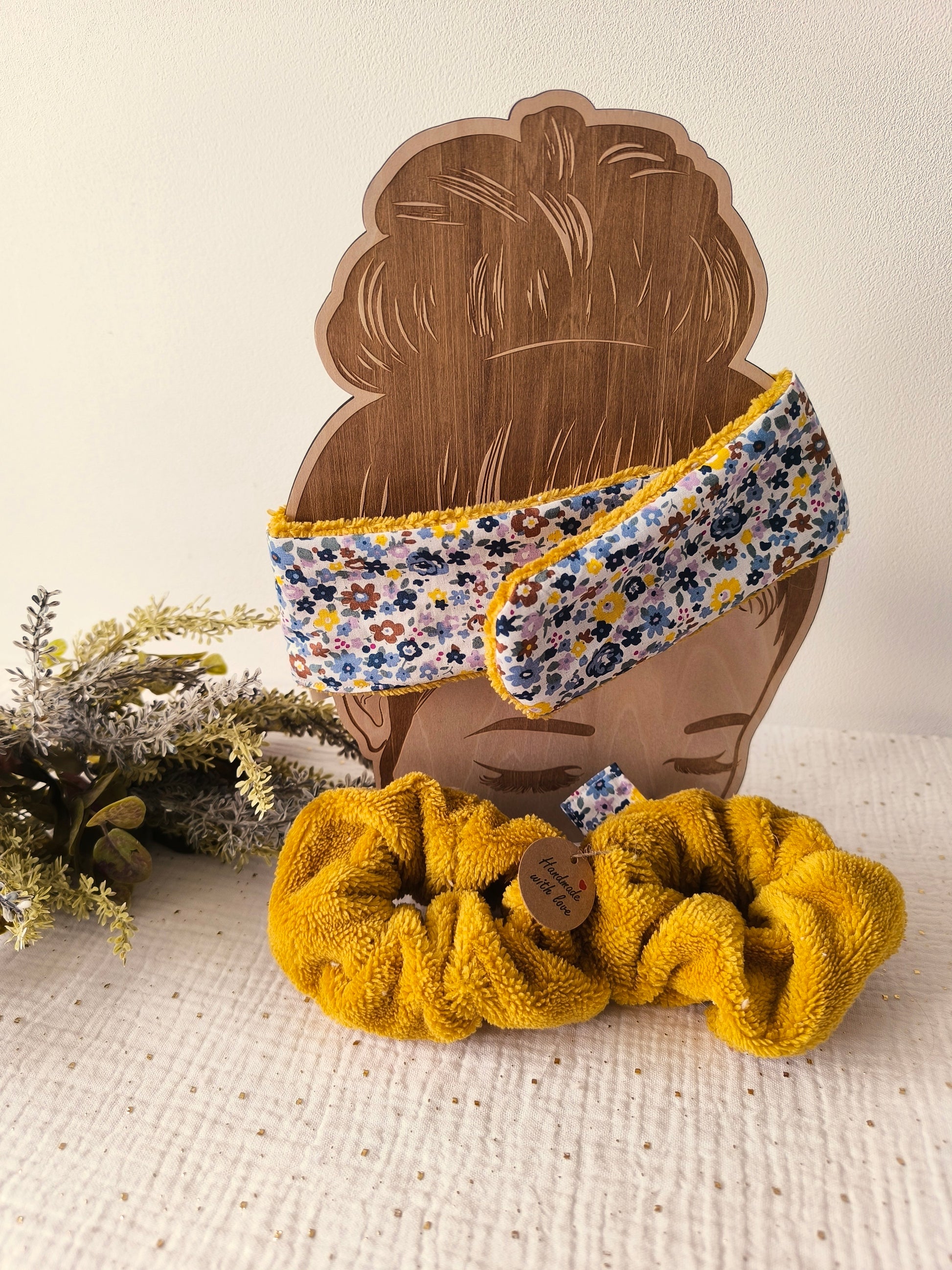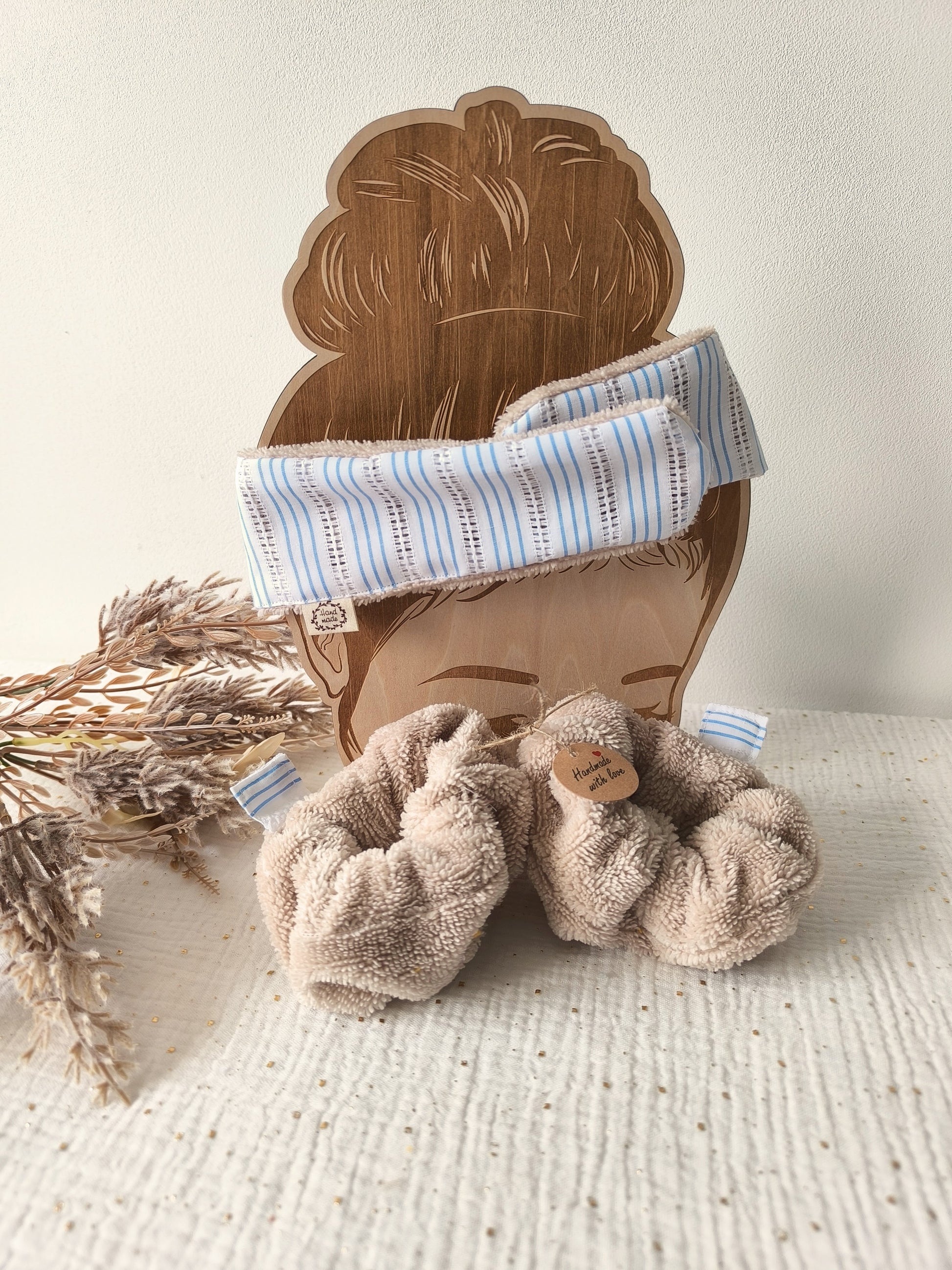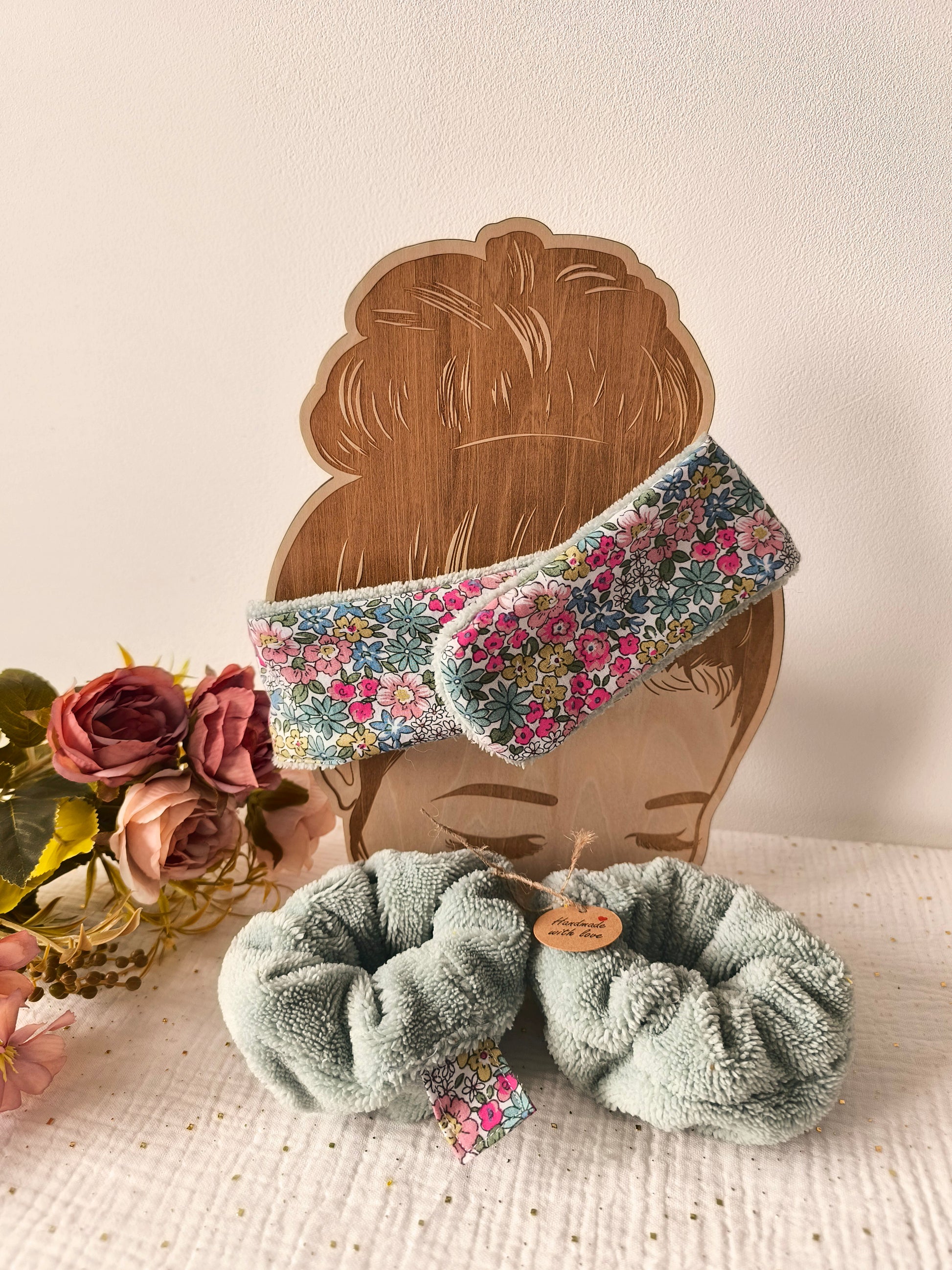 🌿 Le Bandeau Câlin – Pour garder les cheveux bien en place pendant le soin, tout en douceur grâce à sa texture en éponge de bambou.